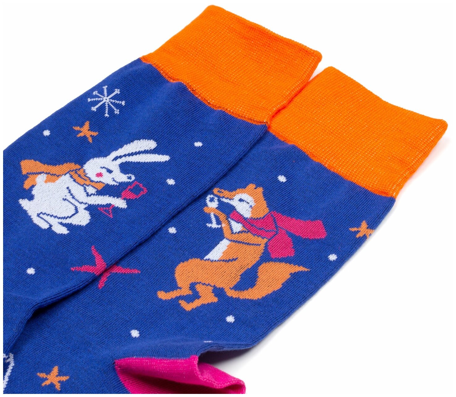 Купить Носки St. Friday Новогодние носкиКролик и лисичка, размер 34-37, голубой, оранжевый