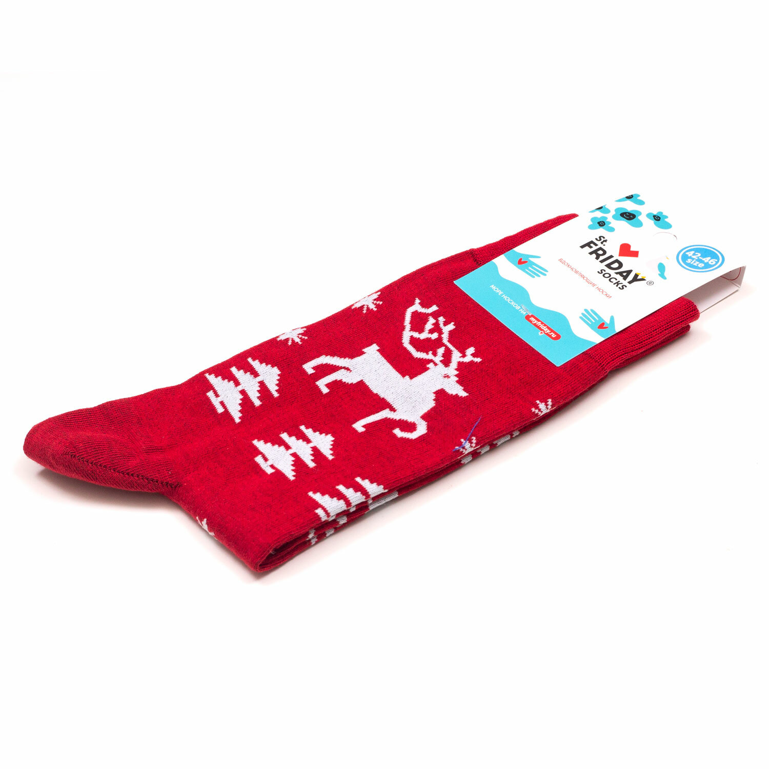Носки St. Friday Новогодние носки с красным оленем, размер 42-46, красный, черный, белый