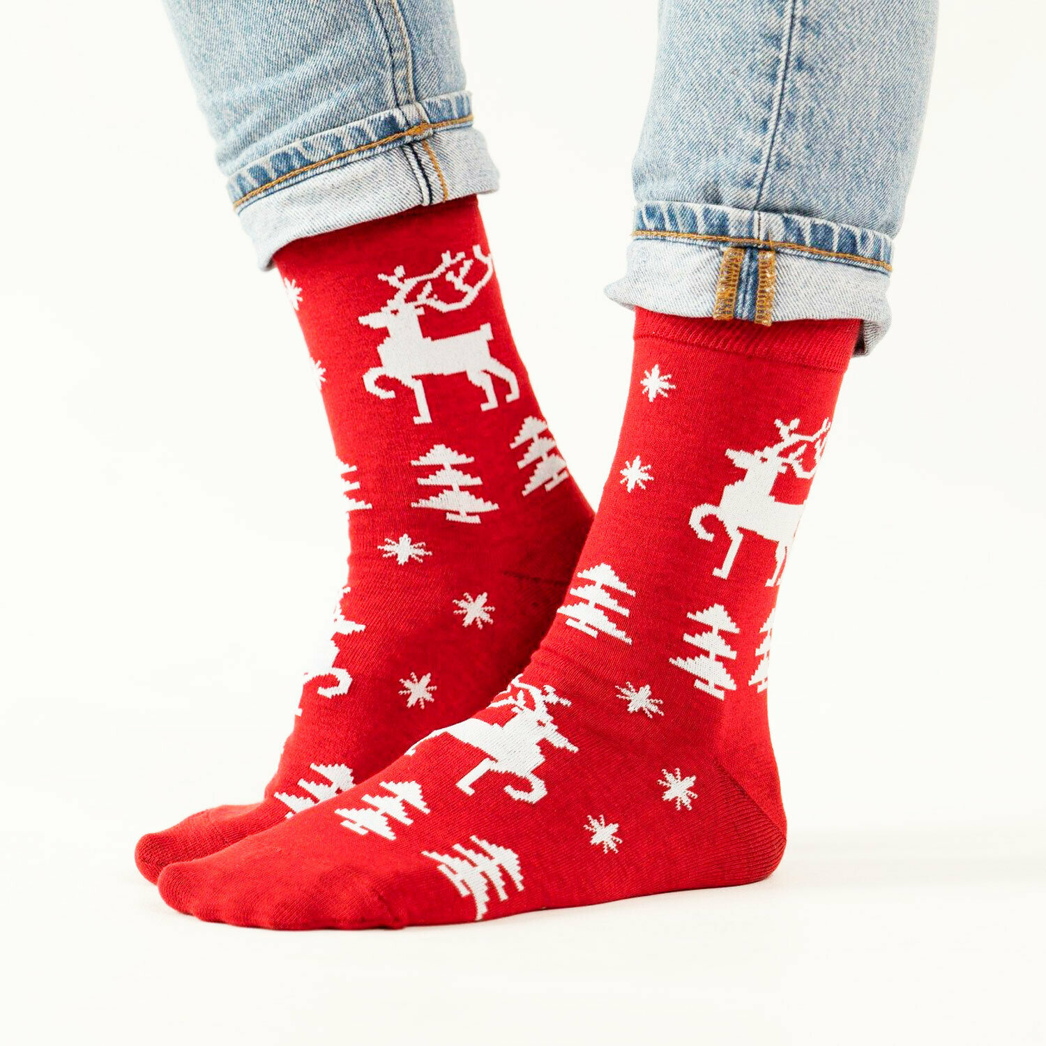 Купить Носки St. Friday Новогодние носки с красным оленем, размер 34-37, красный, черный, белый