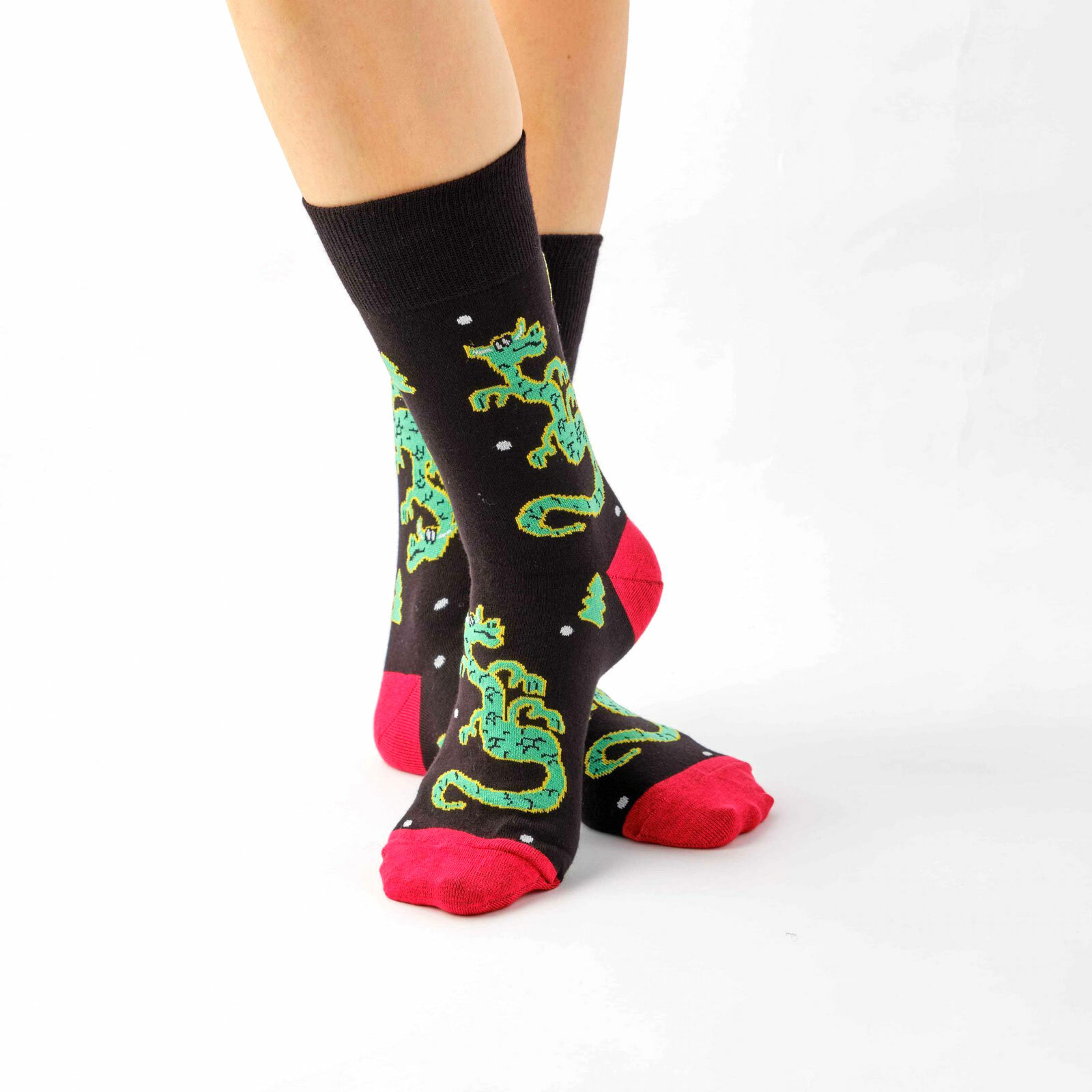 Купить Носки St. Friday Новогодние носки - Такой дракон, размер 34-37, красный, черный, зеленый