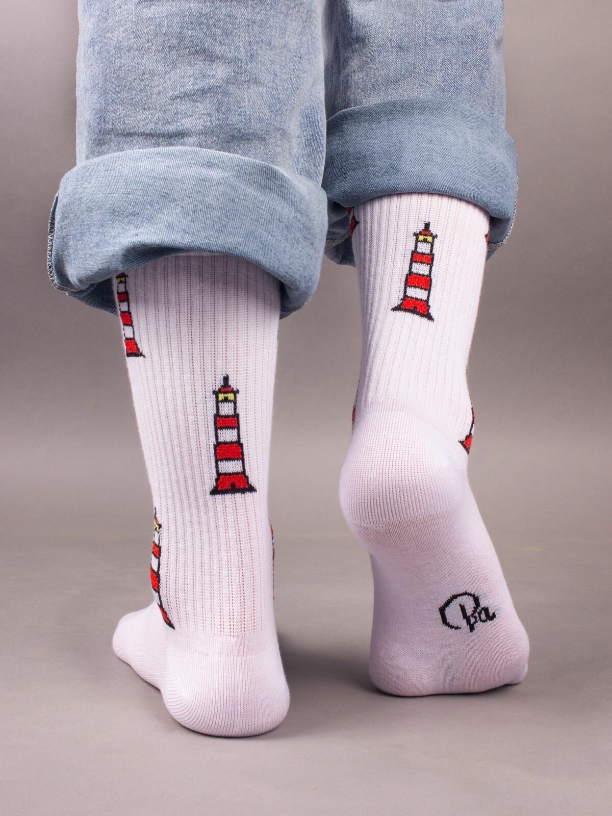 Носки Babushka белые с принтом, размер 36-40, белый, черный