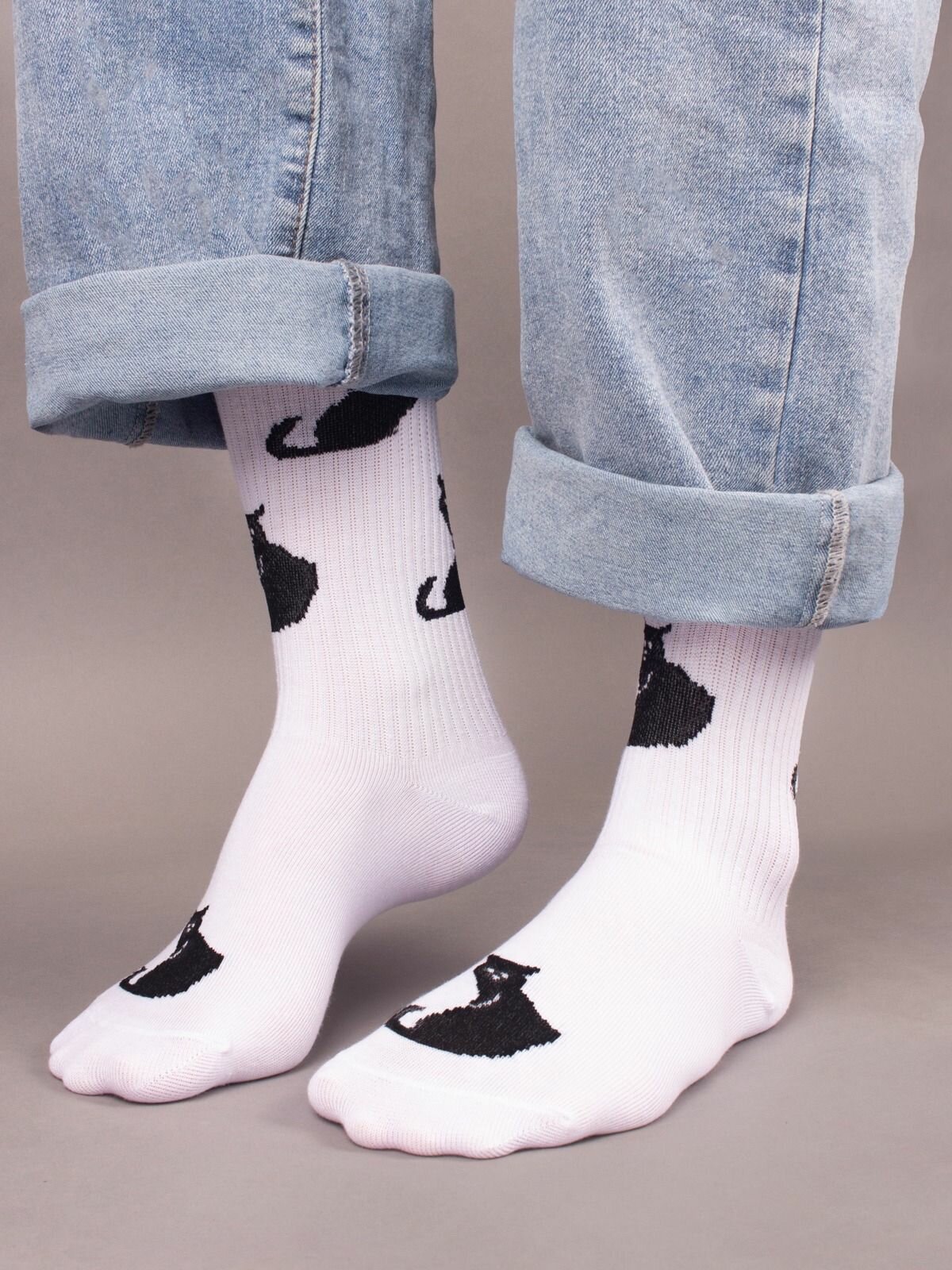 Носки Babushka белые с принтом, размер 36-40, белый, черный