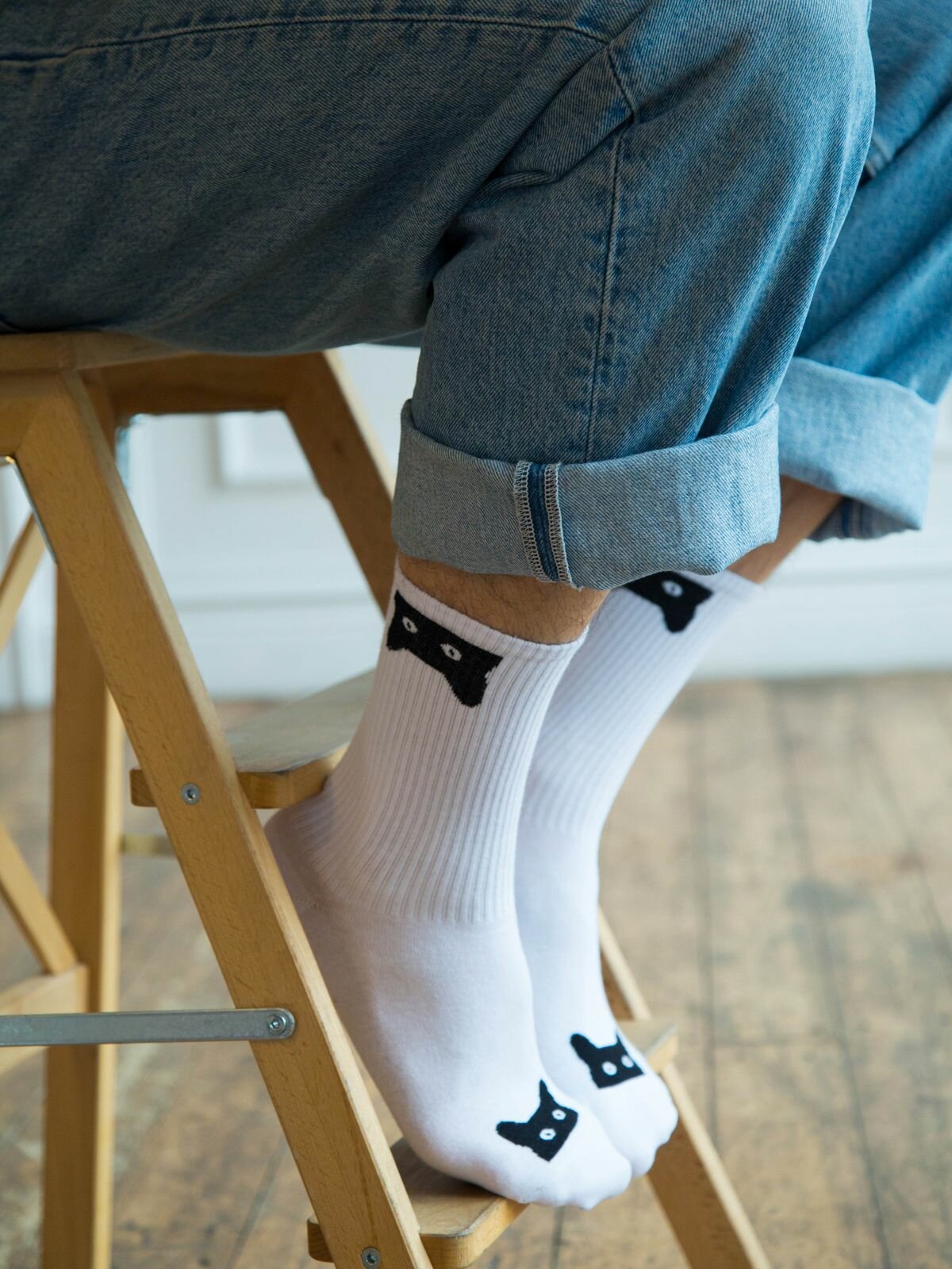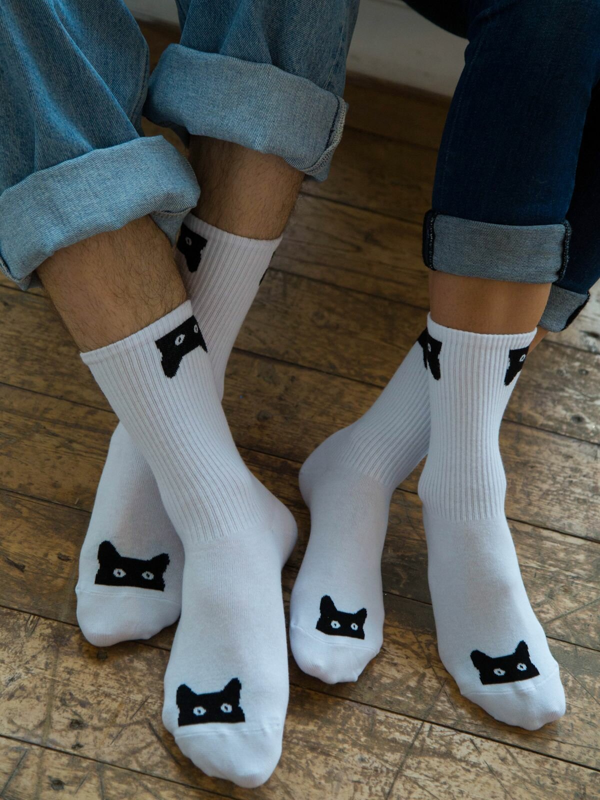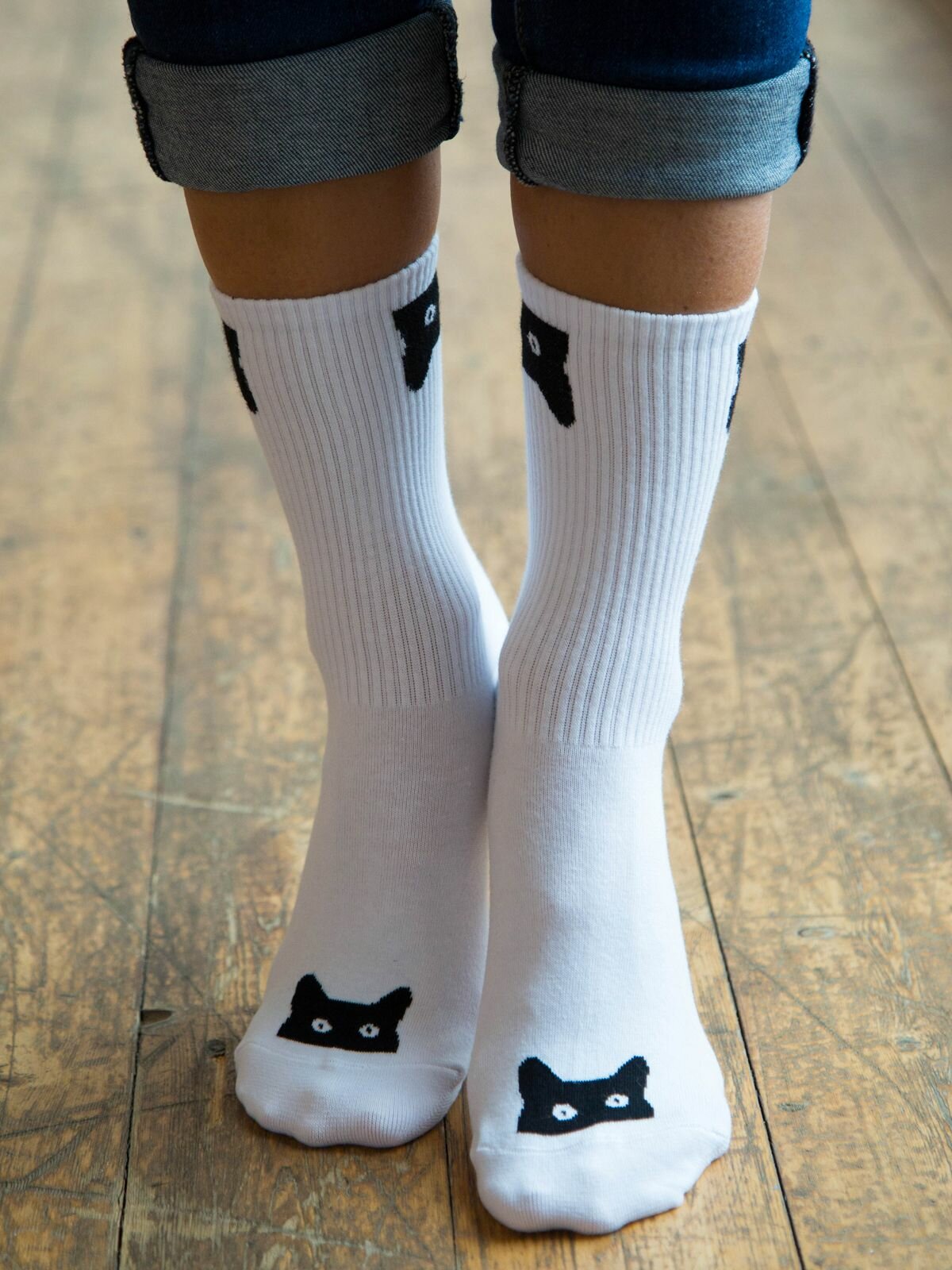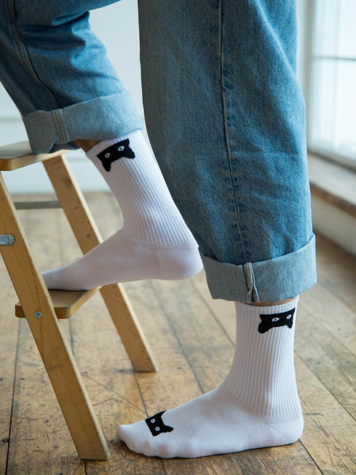 Носки Babushka белые с принтом, размер 36-40, белый, черный