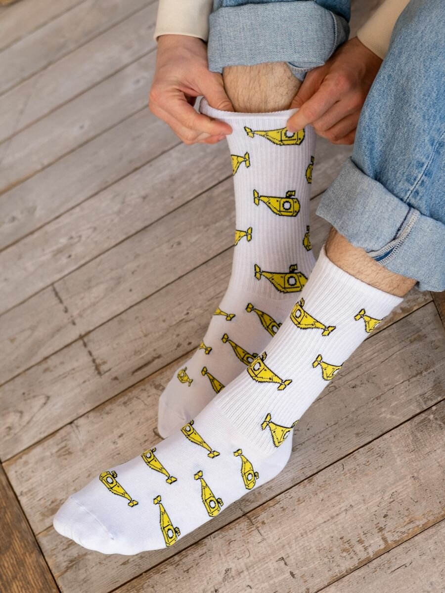 Носки Babushka, размер 45-47, белый/желтый