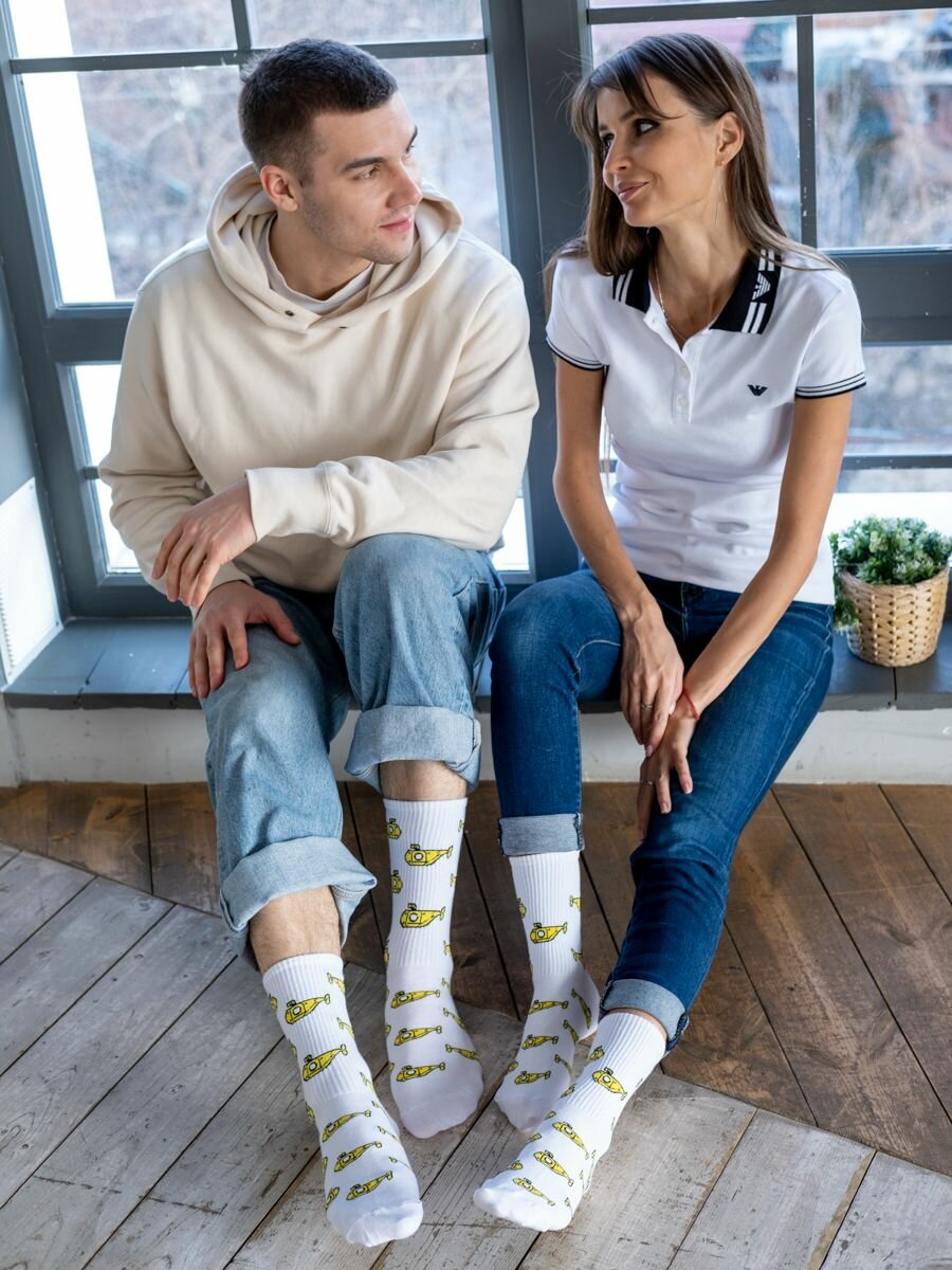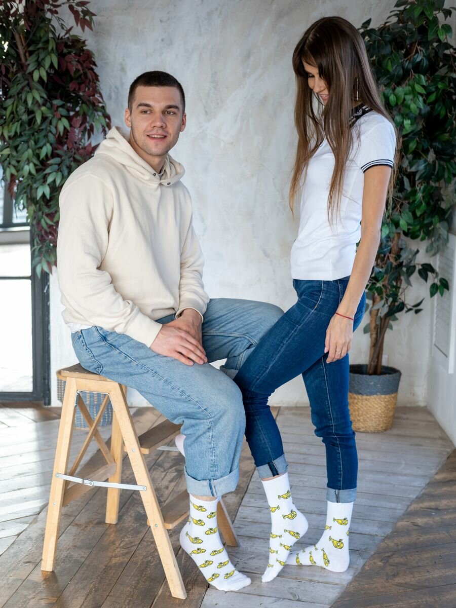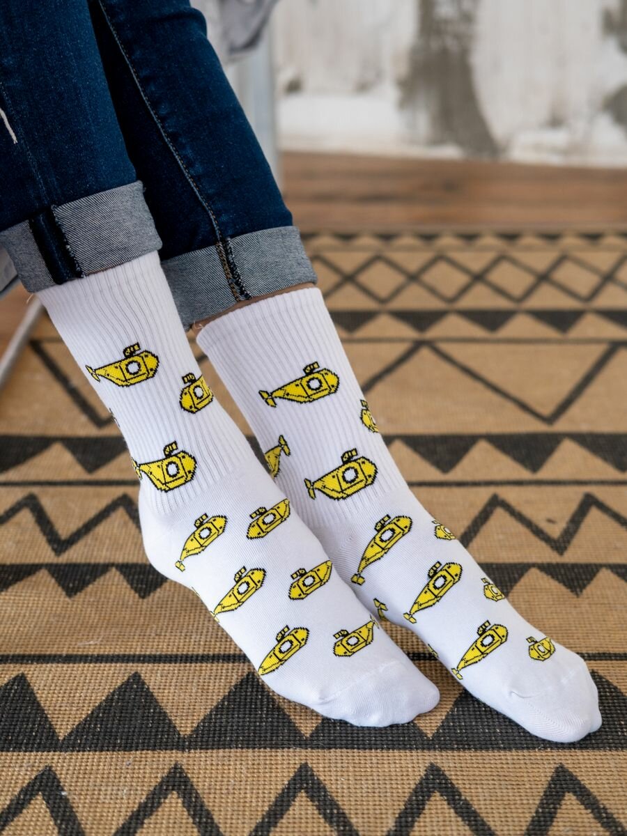 Носки Babushka, размер 41-45, белый/желтый/черный