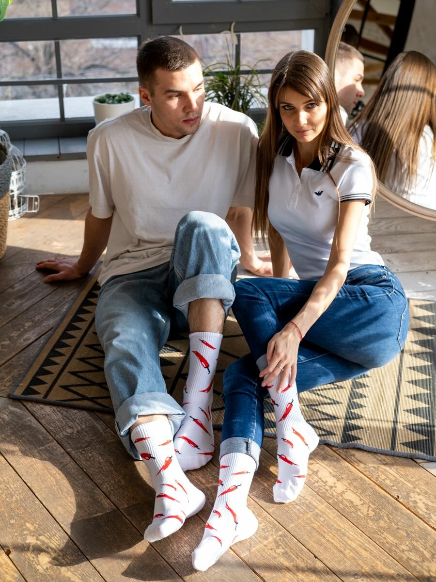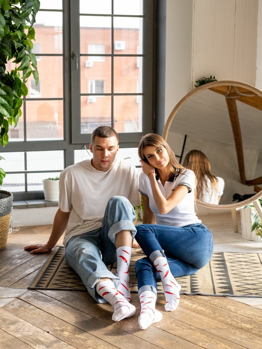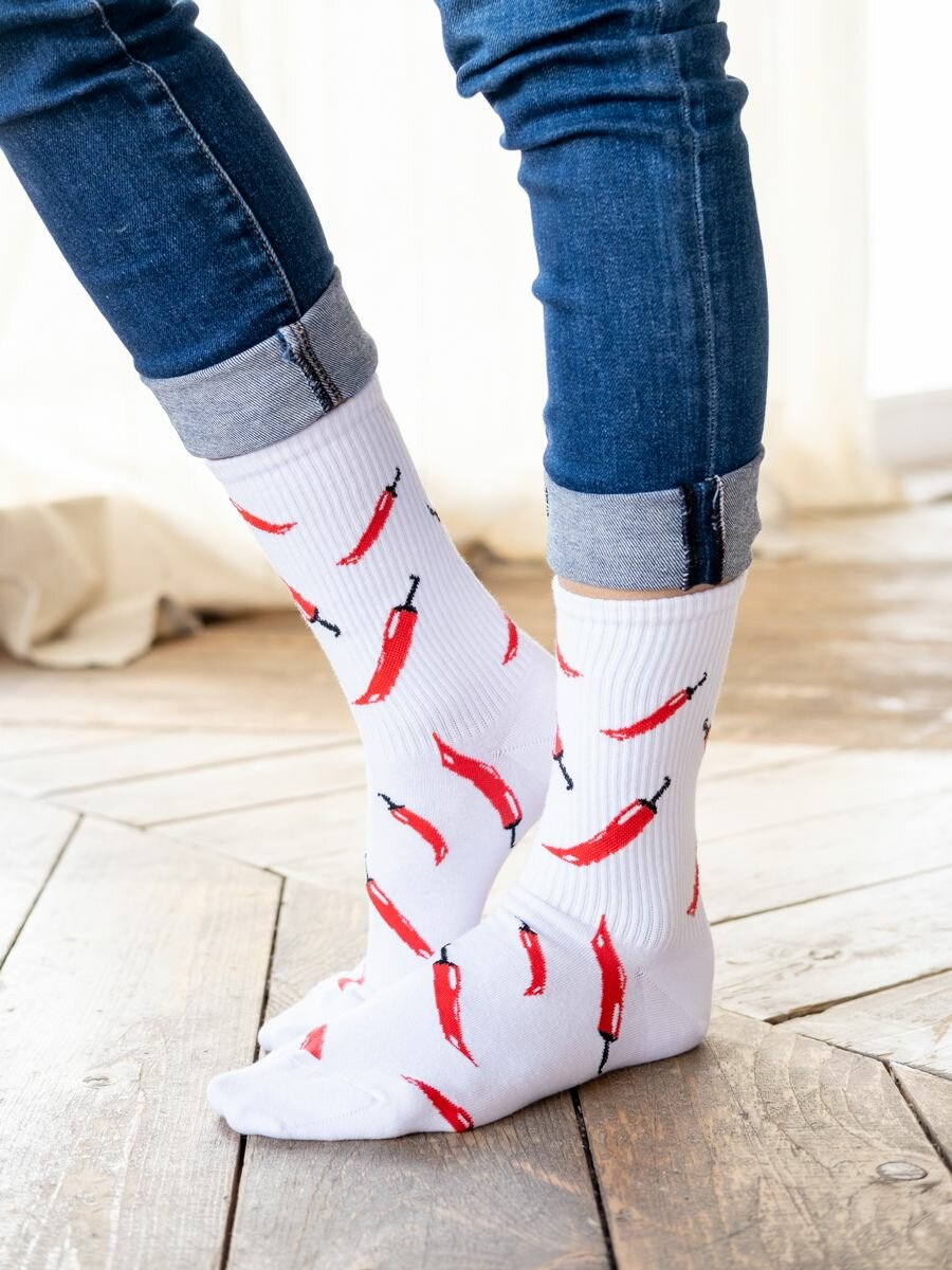 Носки Babushka, размер 41-45, белый, красный