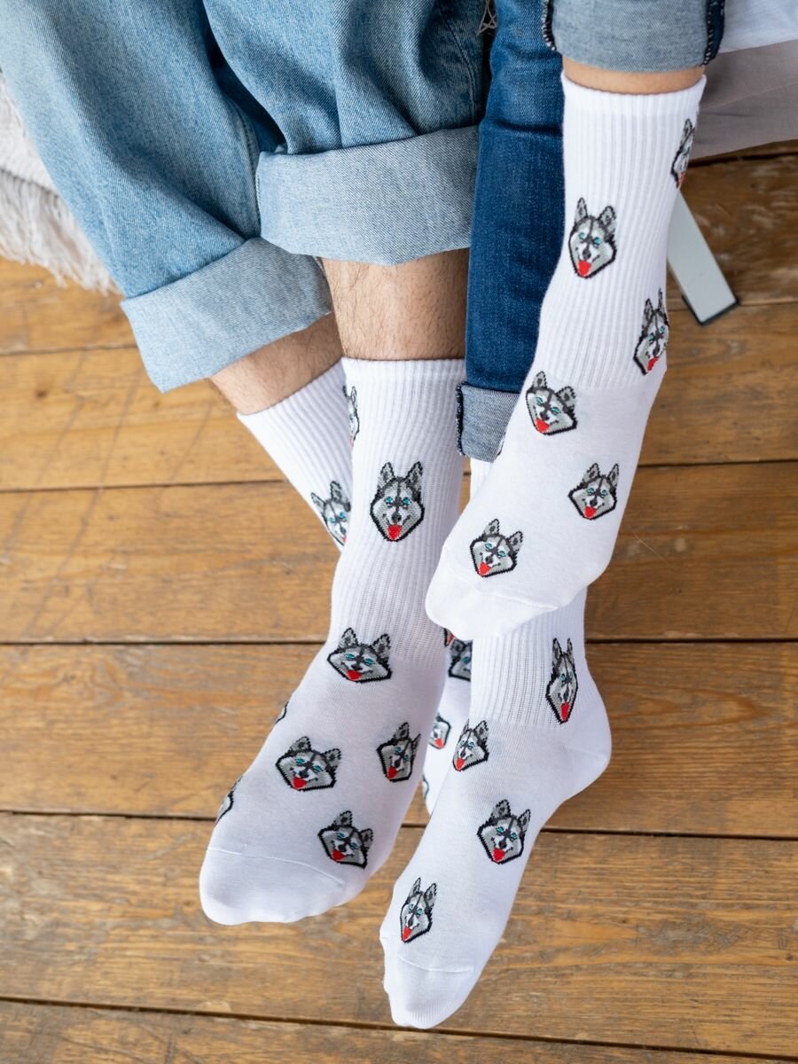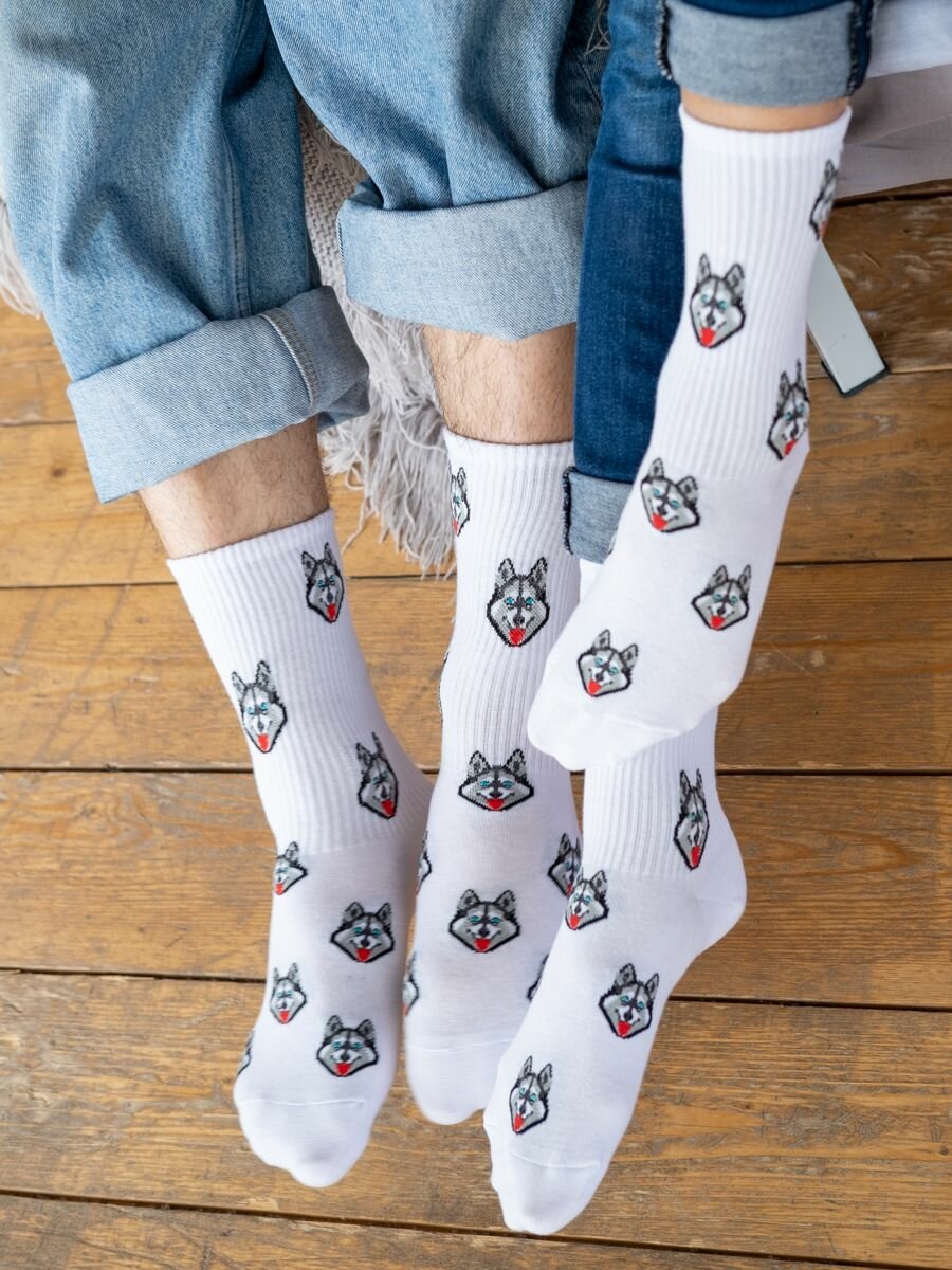 Носки Babushka белые с принтом, размер 36-40, белый, черный