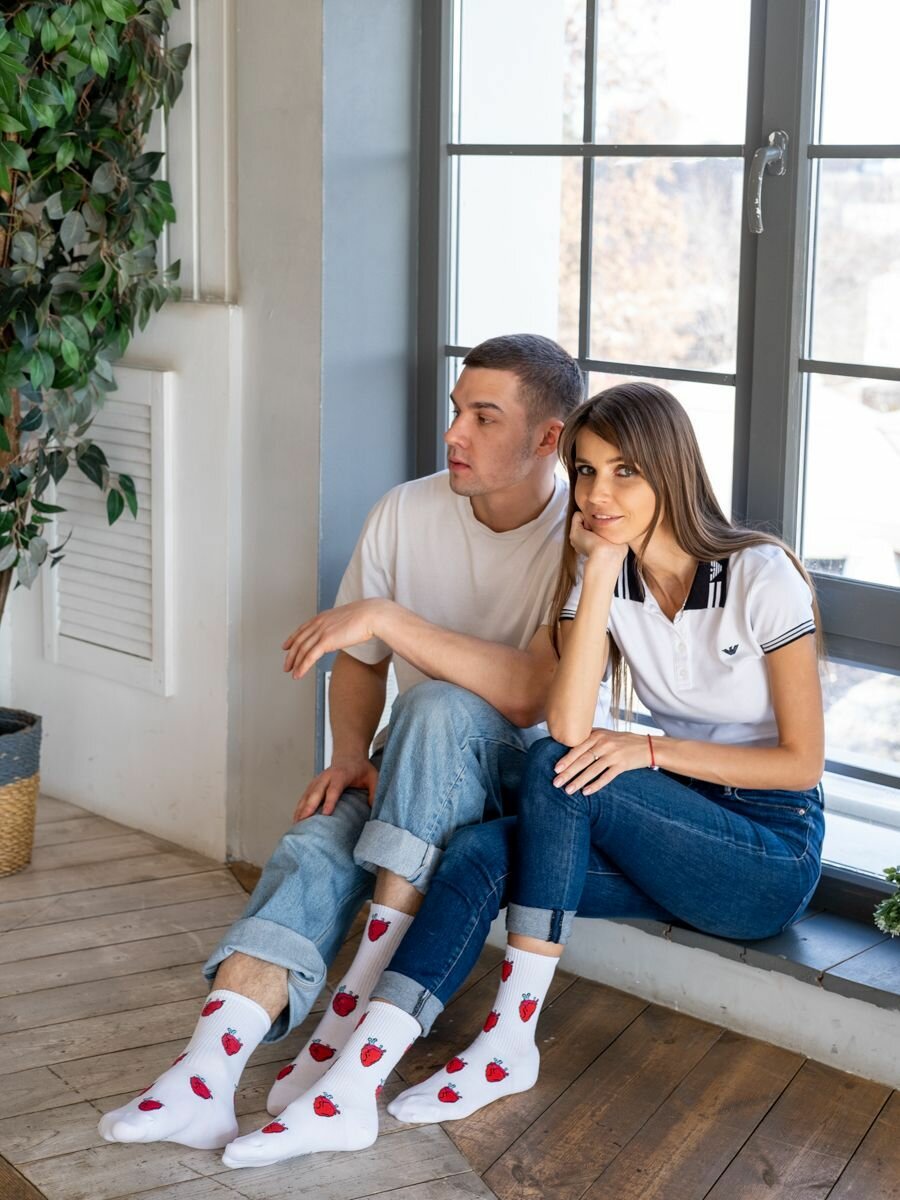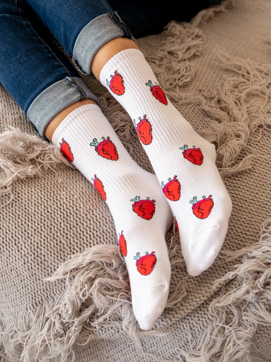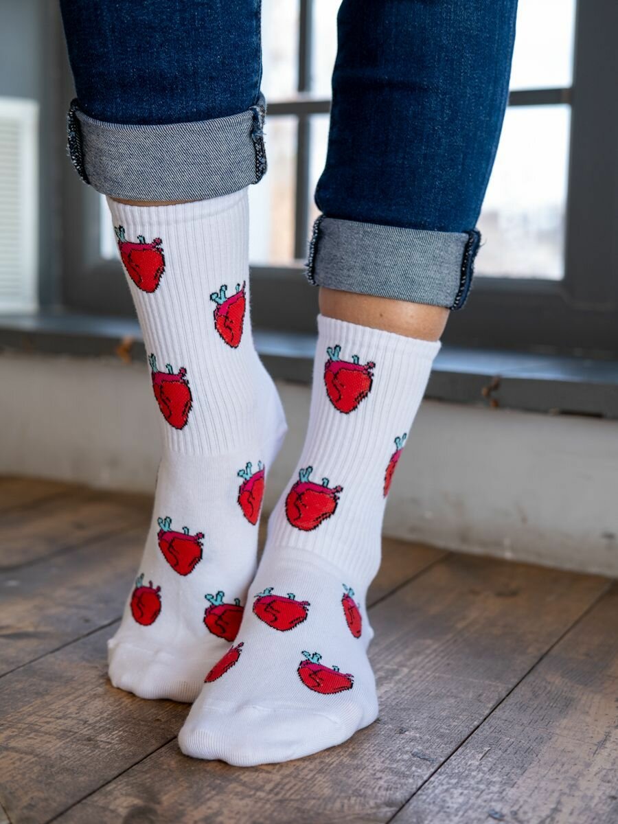 Носки Babushka белые с принтом, размер 36-40, белый, красный