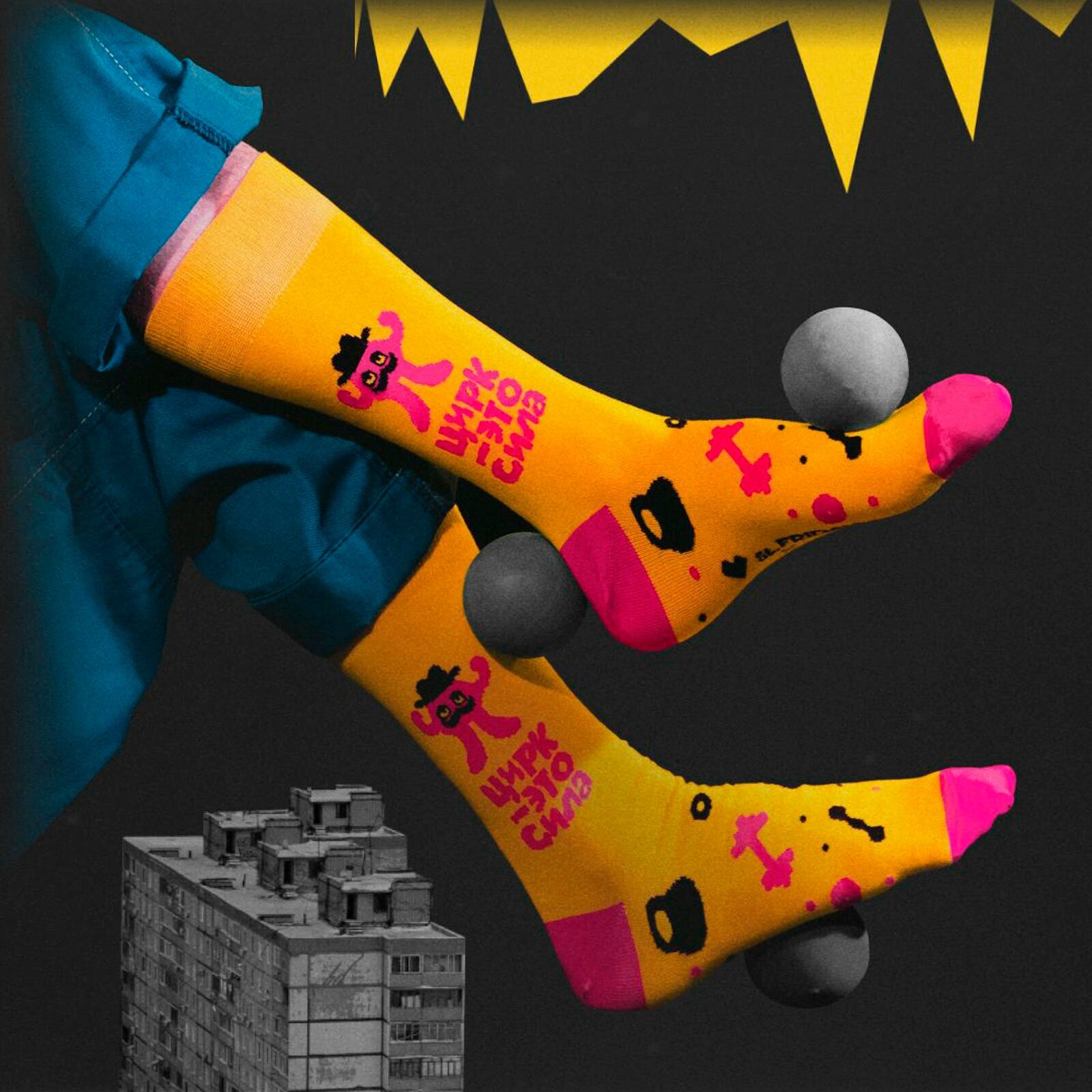 Купить Носки St. Friday x Упсала-Цирк - Это сила, размер 42-46, желтый, розовый