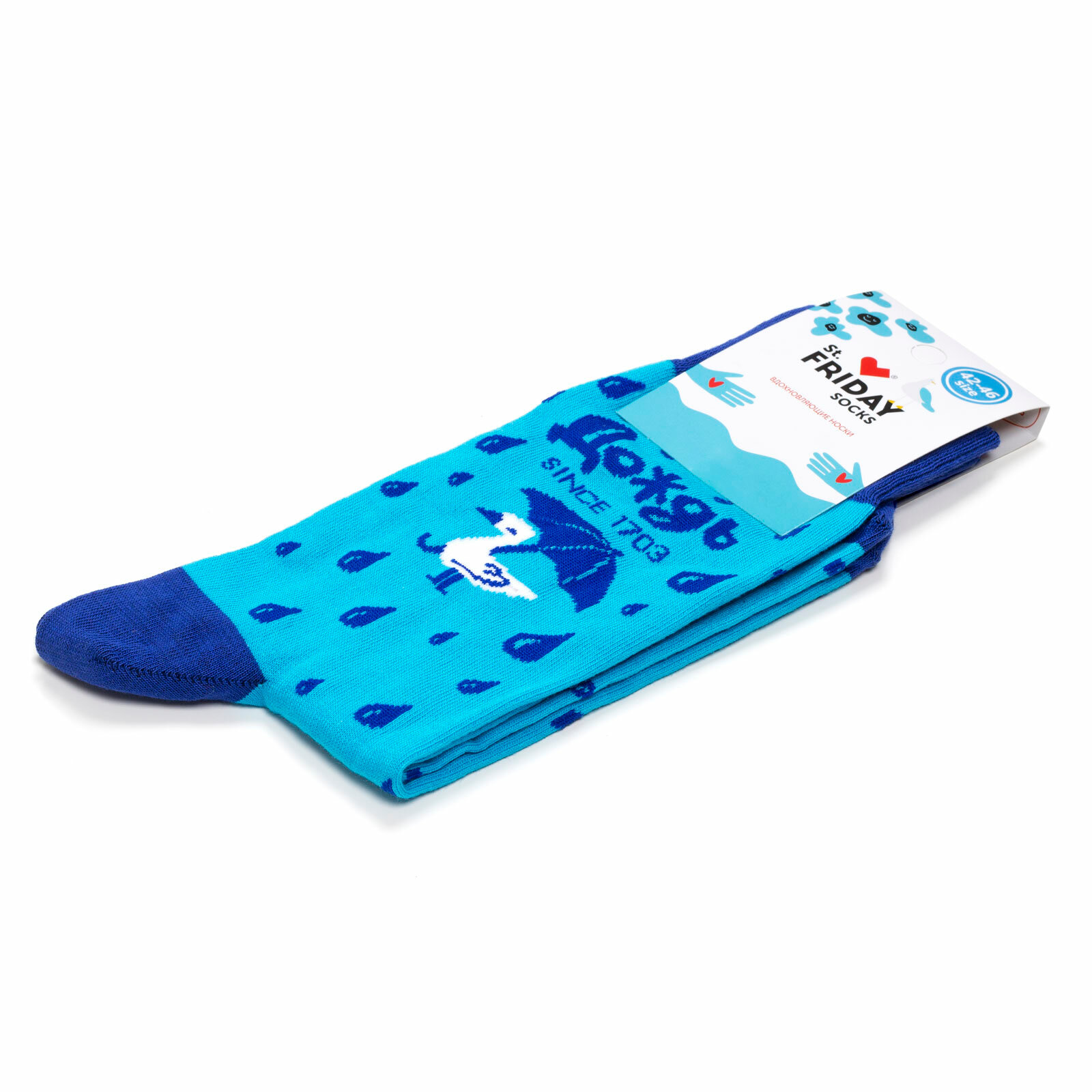 СохранитьНоски St. Friday Дождь since 1703, размер 42-46, синий, белый, голубой интересное: