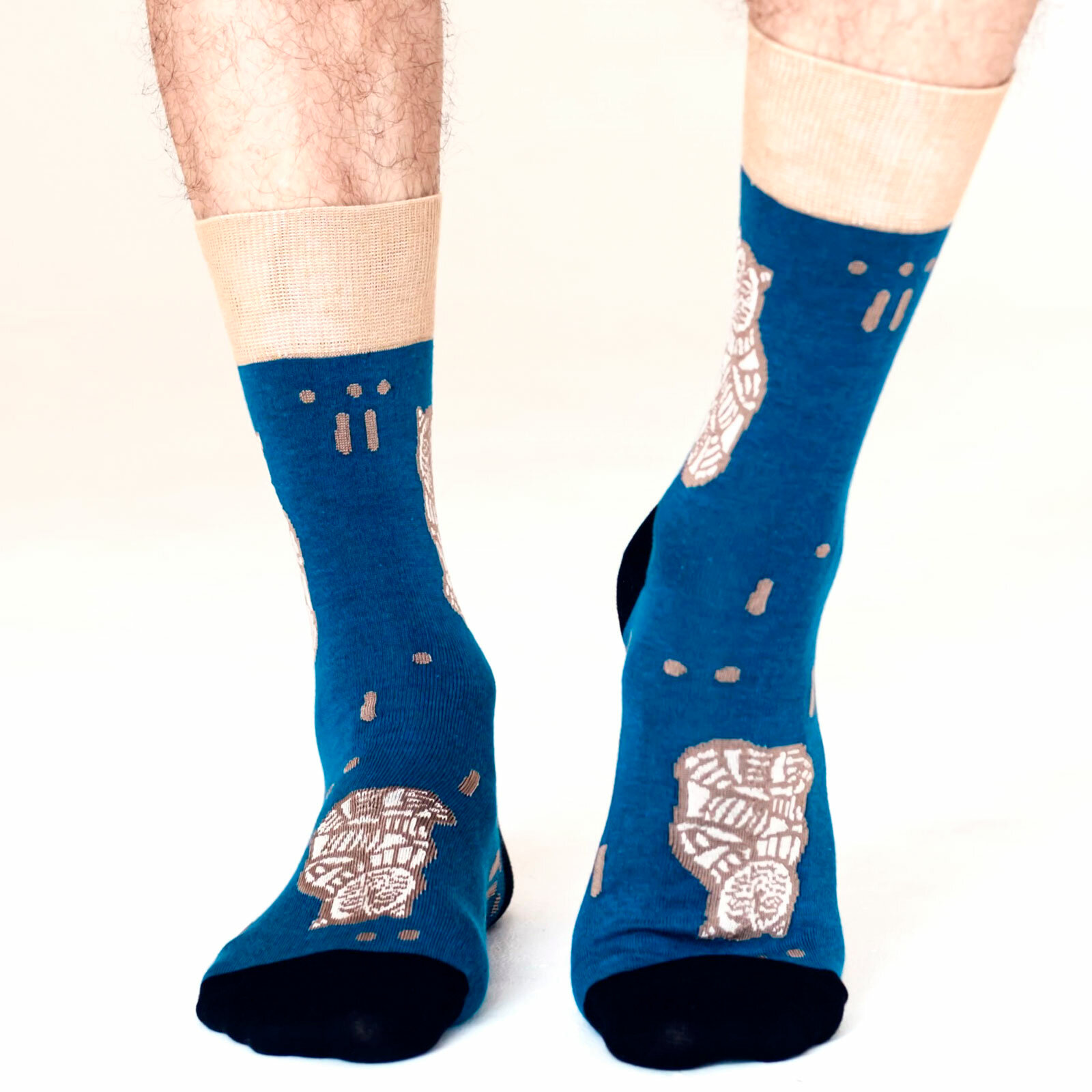 Носки St. Friday Грибы с глазами, размер 42-46, бежевый, голубой, оранжевый