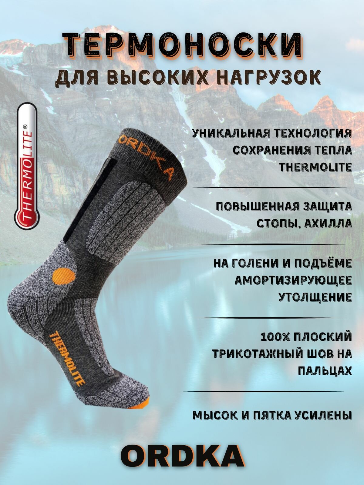 Термоноски ORDKA, размер 39-42, серый, черный, оранжевый интересное: