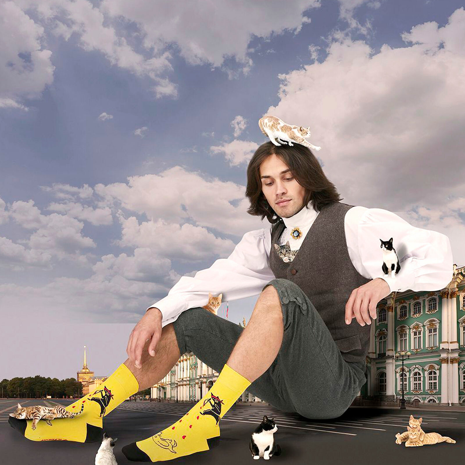 Носки St. Friday Плесский котик, размер 42-46, белый, голубой, желтый