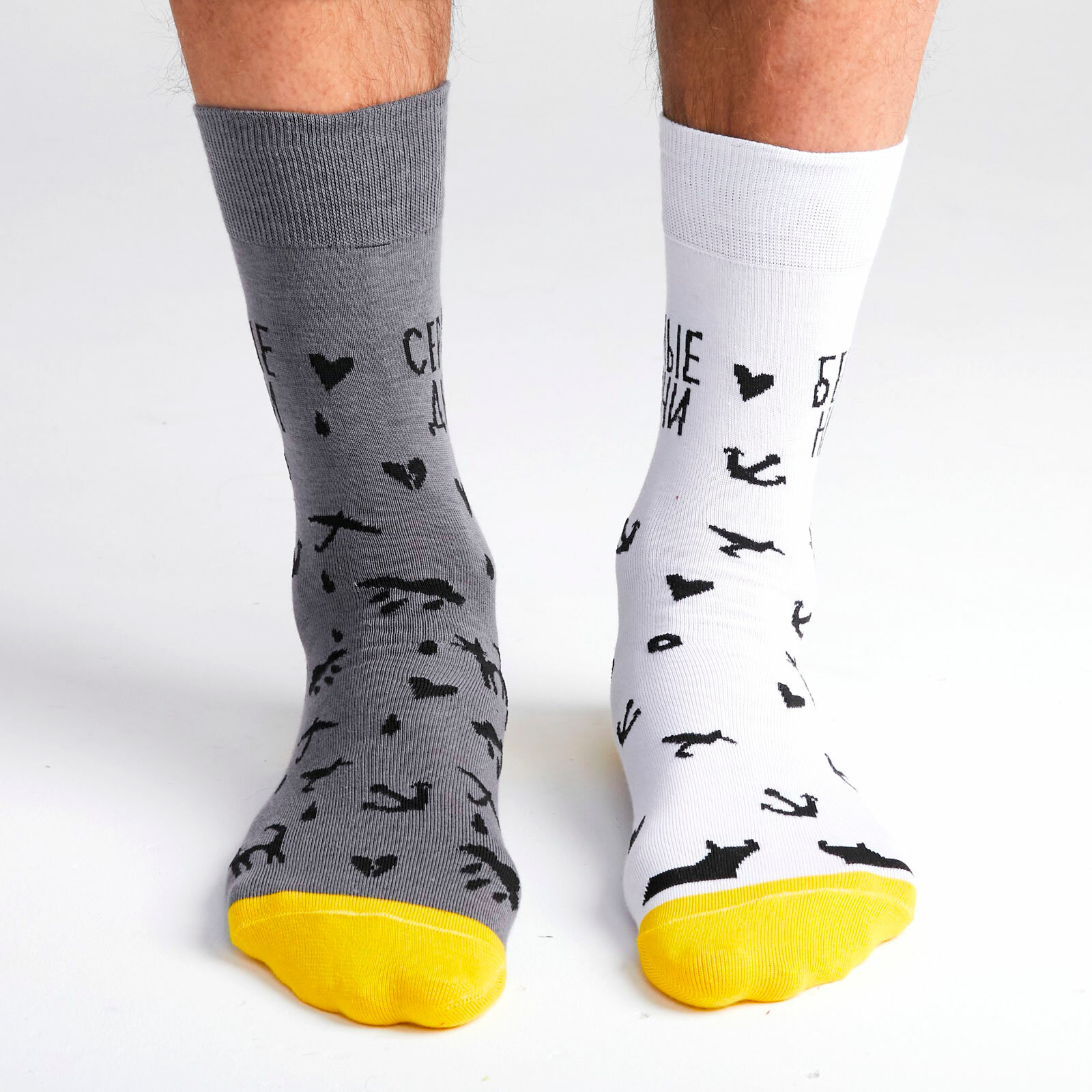 Носки St. Friday Носки с надписями Серые дни, белые ночи, размер 38-41, черный, белый, серый