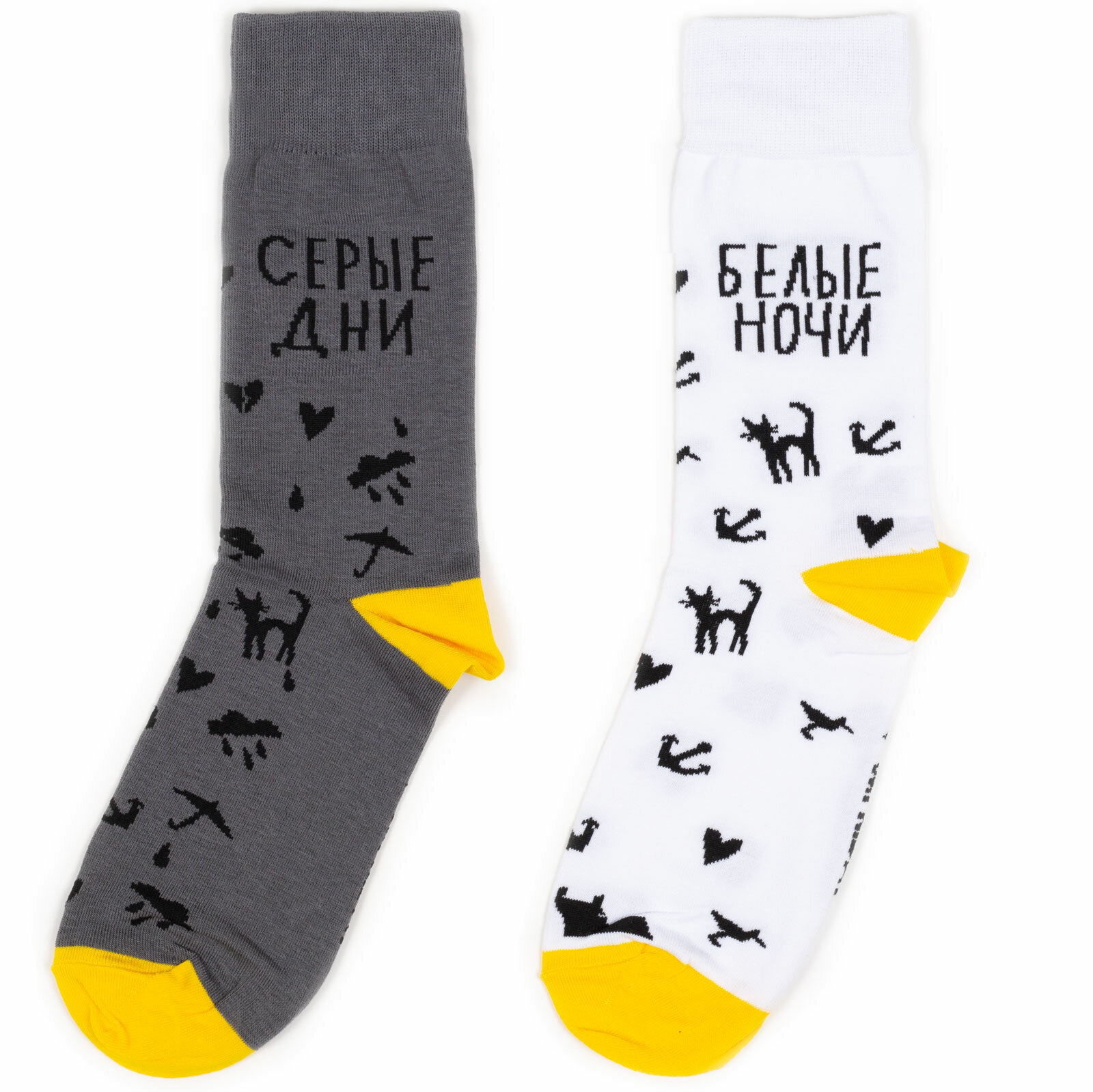 Купить Носки St. Friday Носки с надписями Серые дни, белые ночи, размер 42-46, черный, белый, серый