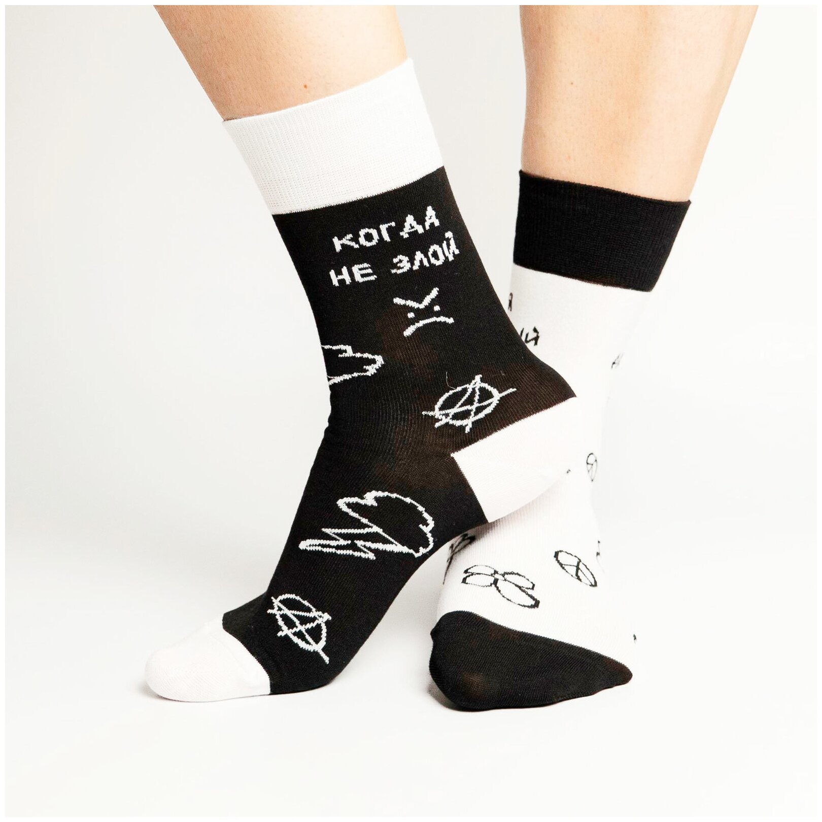 Носки St. Friday носки с надписью Добрый, когда не злой, размер 42-46, черный, белый