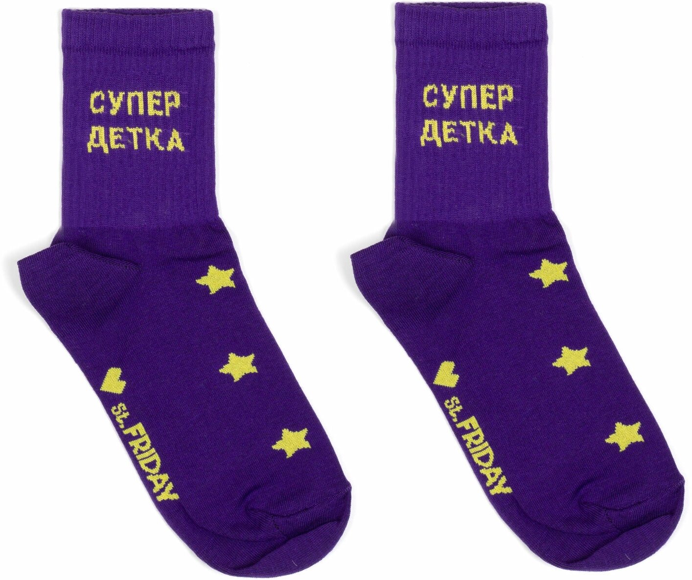Носки St. Friday Носки укороченные спортивные с надписями- Супер детка, размер 34-37, фиолетовый