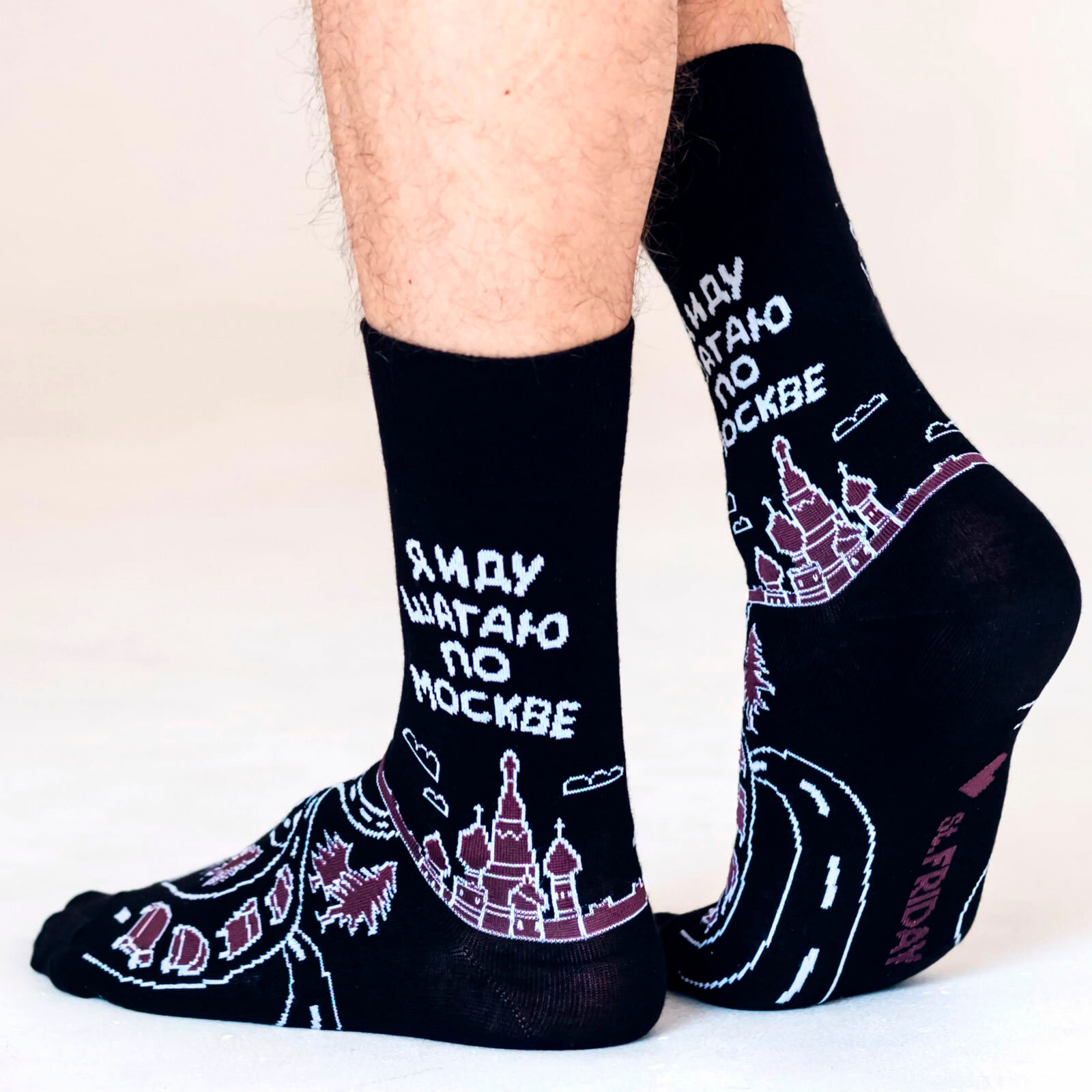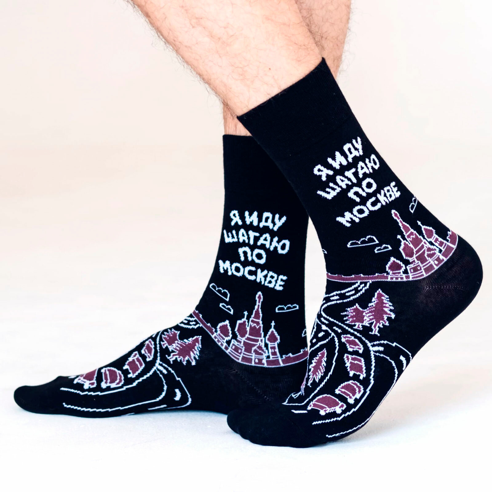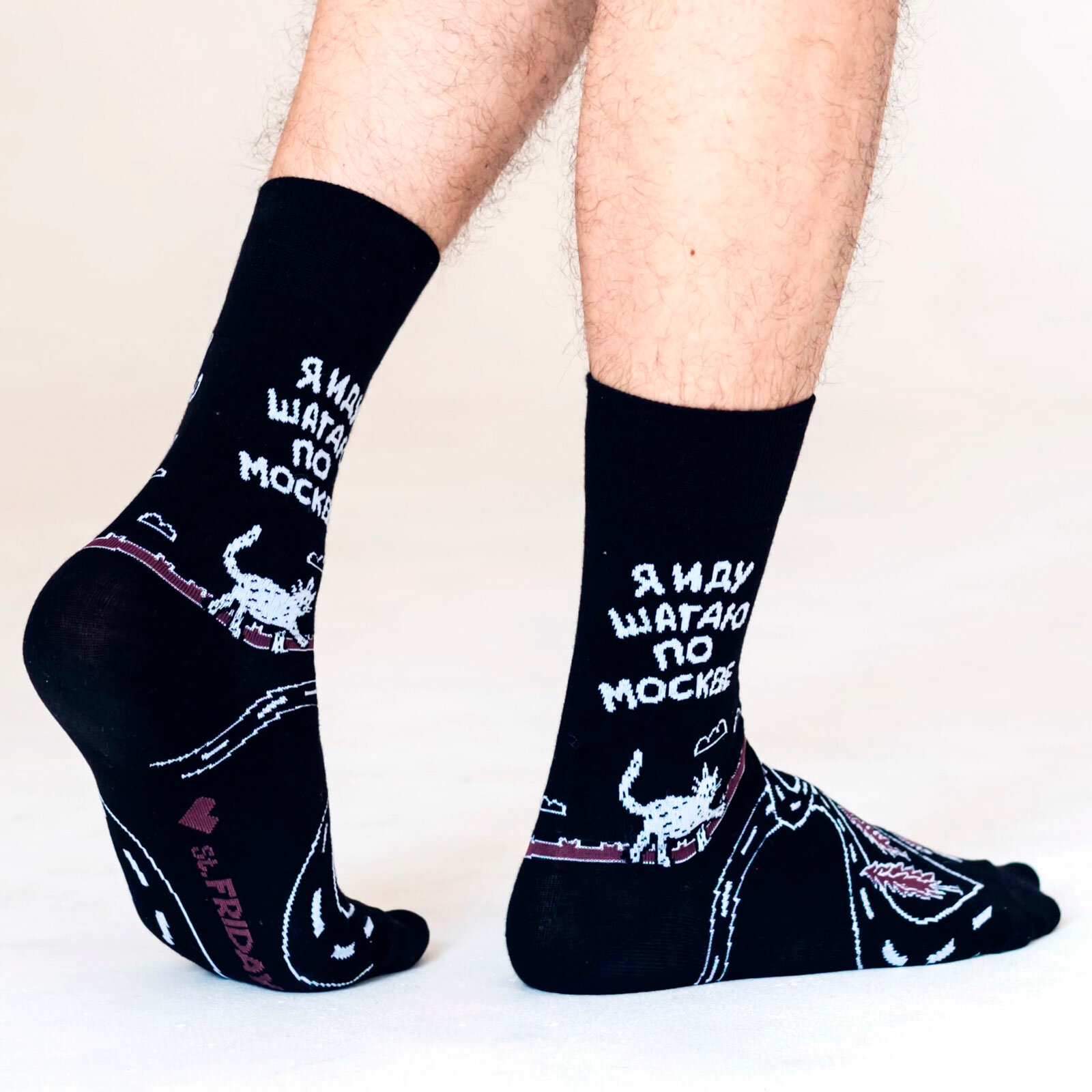 СохранитьНоски St. Friday Носки с надписями Я иду шагаю по Москве, размер 34-37, черный, серый, красный интересное: