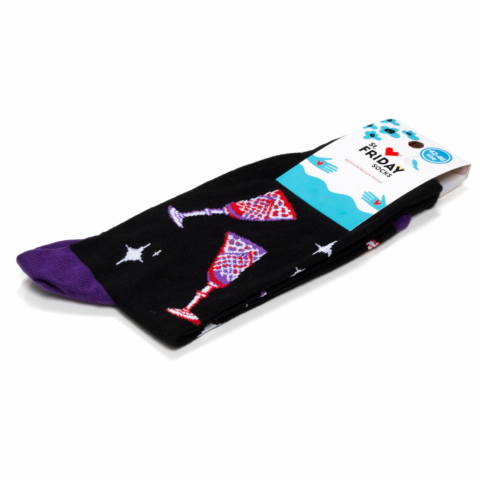Носки St. Friday За здоровье, размер 42-46, черный, голубой, красный
