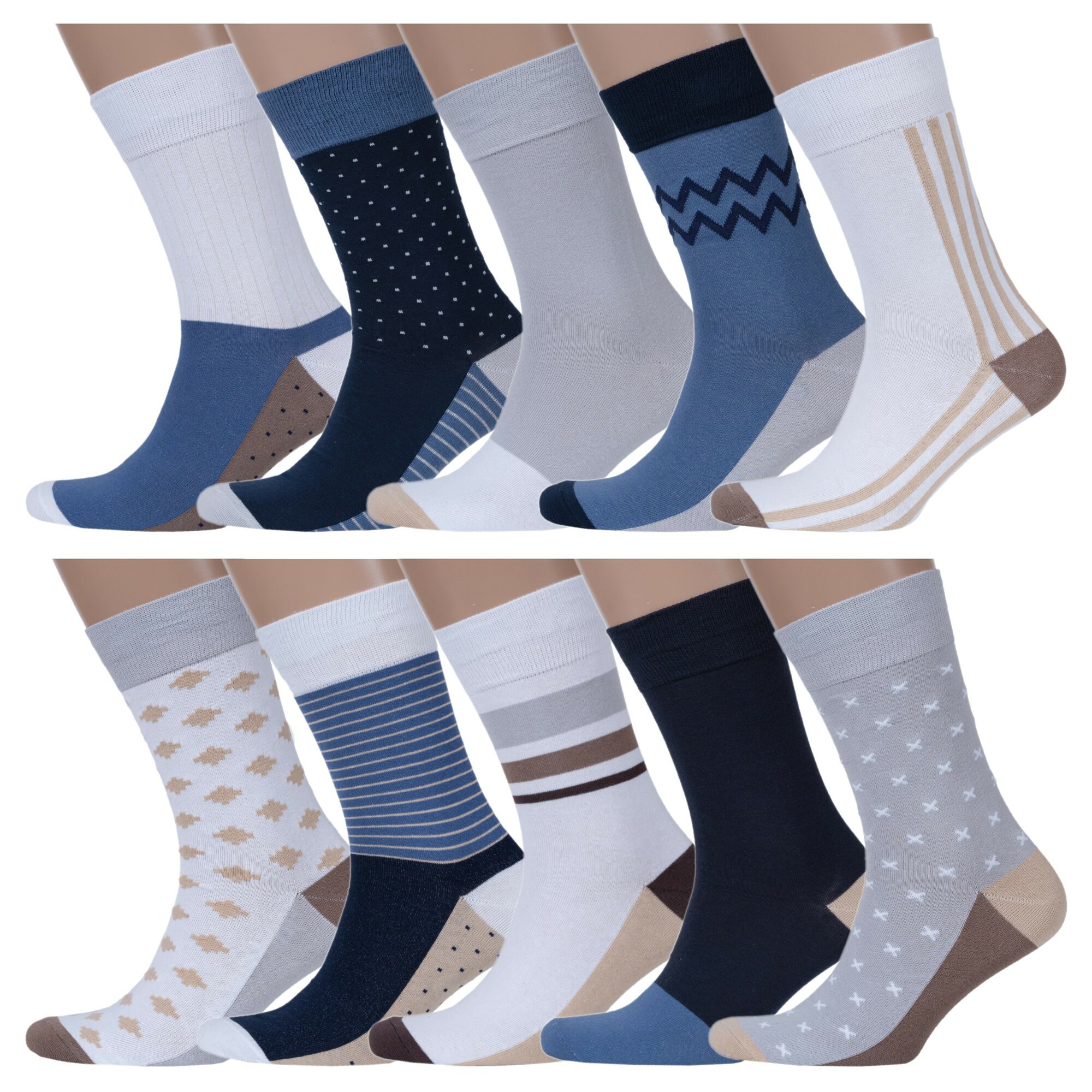Носки MSCLUB Базовая коллекция, комплект, 10 пар, размер 25 (38-40), бежевый, белый, синий