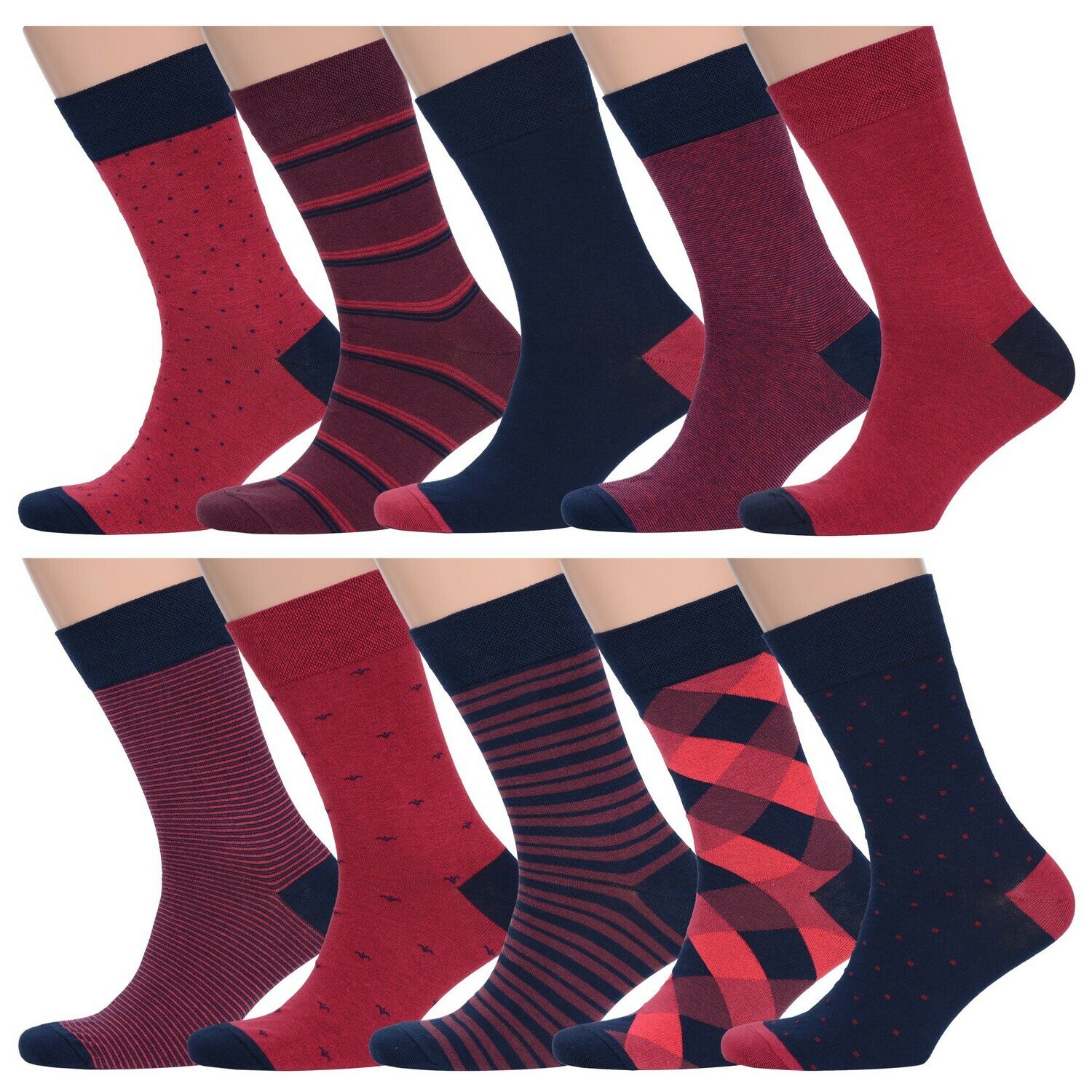 Купить Носки MSCLUB Базовая коллекция, комплект, 10 пар, размер 25 (38-40), синий, бордовый