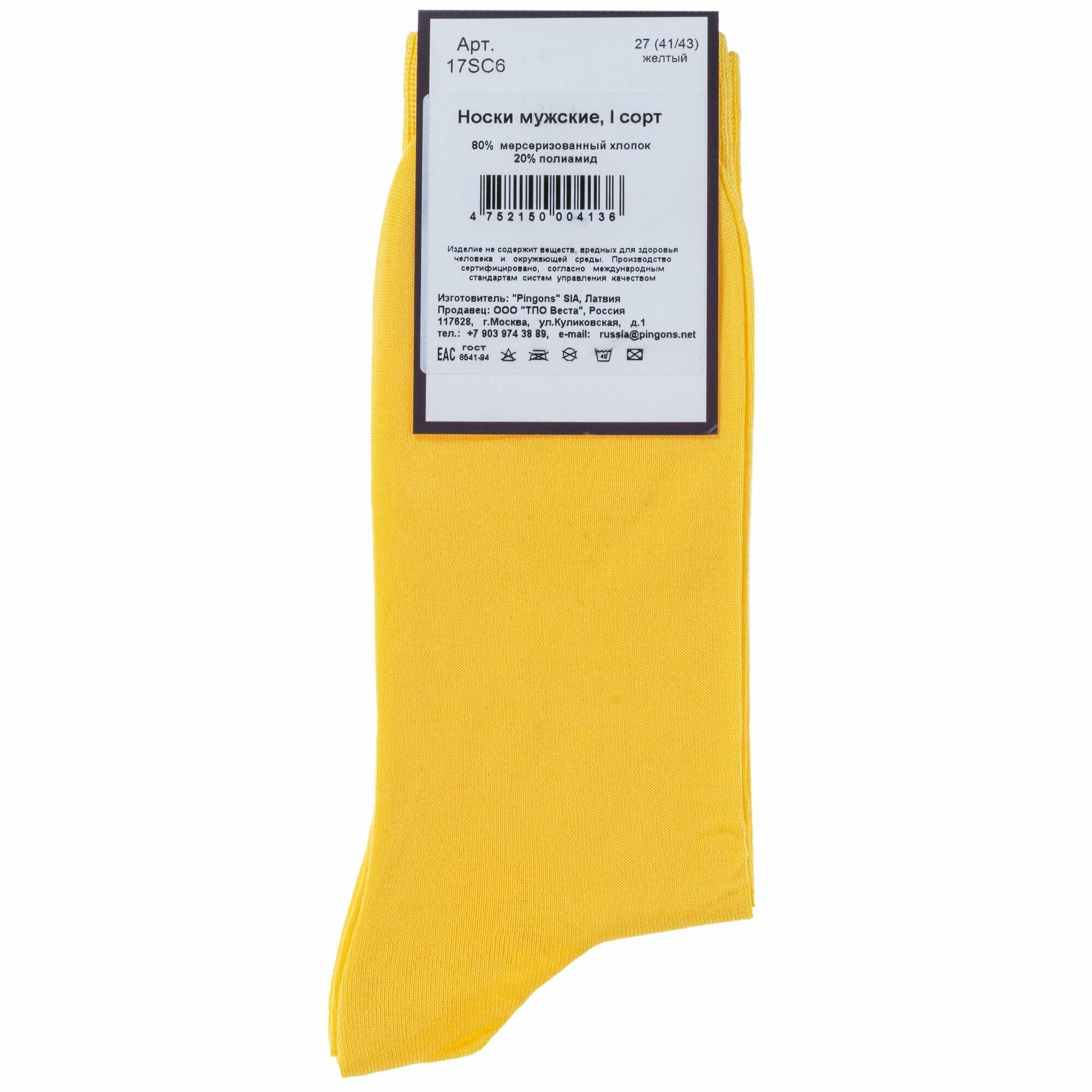 Носки Sergio di Calze Базовая коллекция, размер 27, желтый