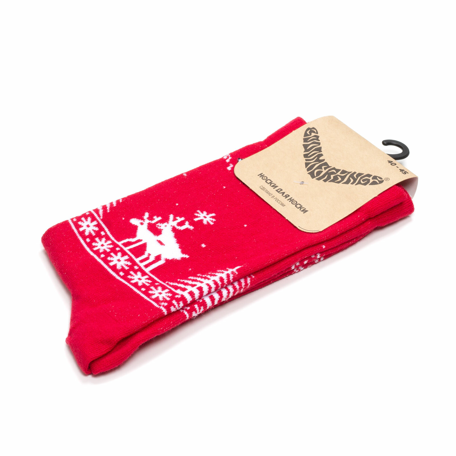 Носки BOOOMERANGS Носки спортивные с рисунками - Иду гуляю - Новый Год, размер 34-39, красный, черный, белый