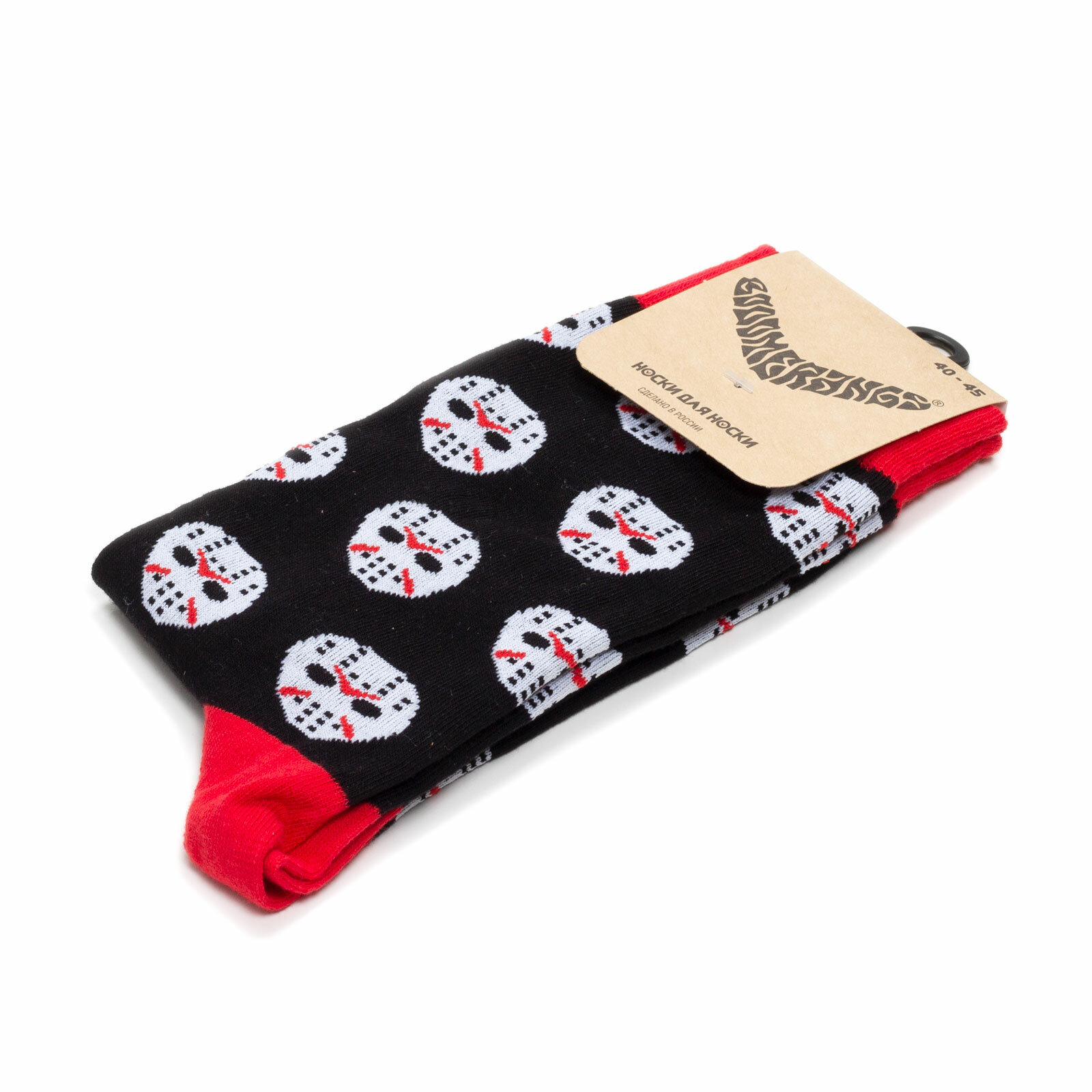 Купить Носки BOOOMERANGS носки с рисунками - "Маска - хоккей", размер 40-45, красный, черный, белый