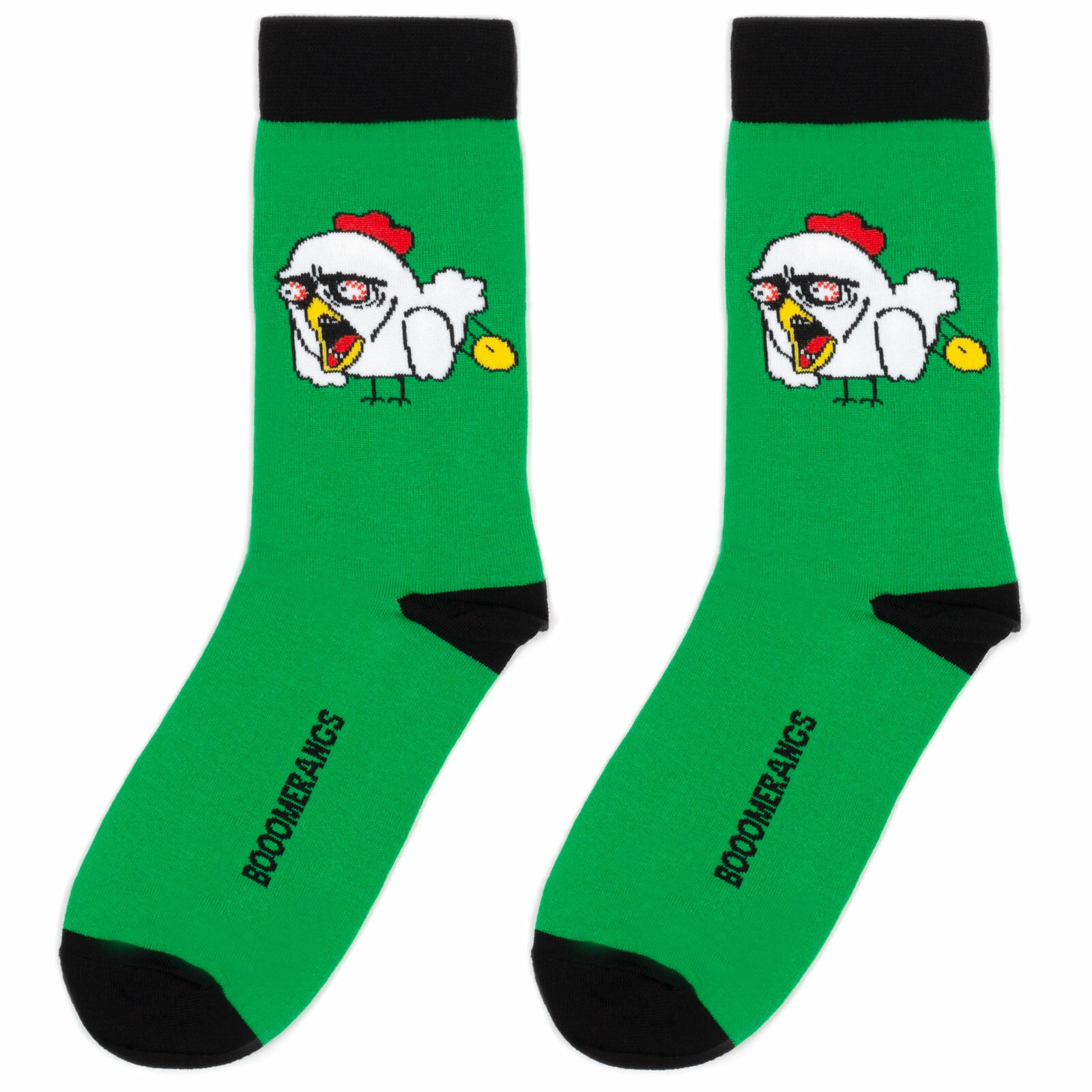 Купить Носки BOOOMERANGS носки с рисунками - "Курица с яйцом", размер 40-45, белый, зеленый, желтый