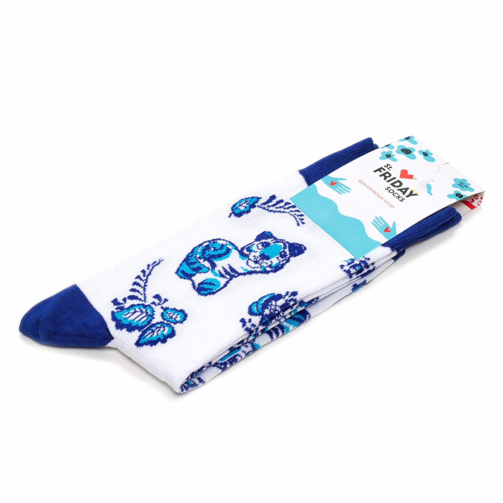 СохранитьНоски St. Friday - Гжельский тигр, размер 42-46, голубой, синий, белый интересное: