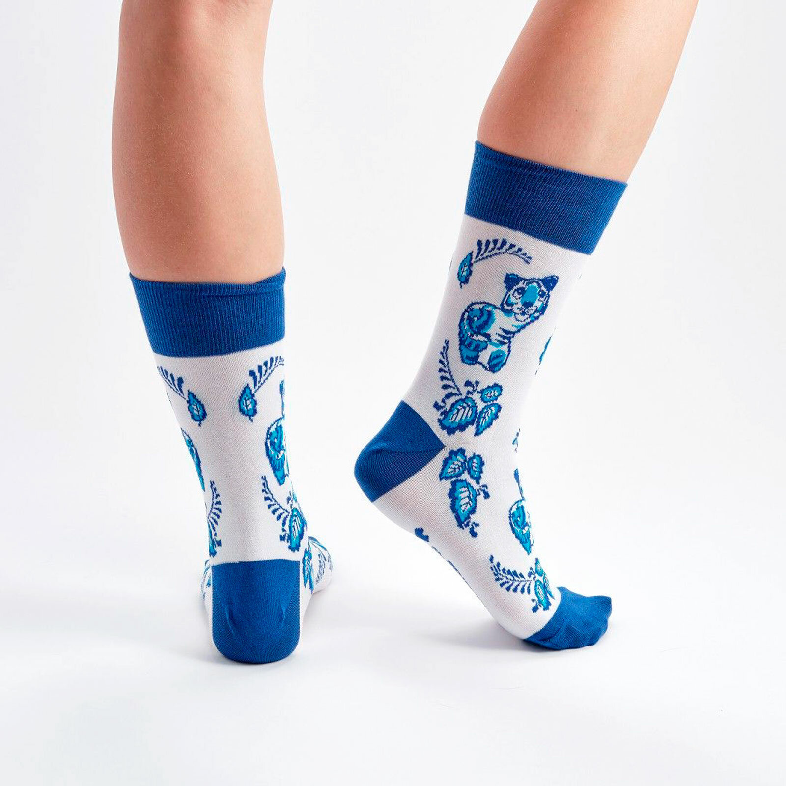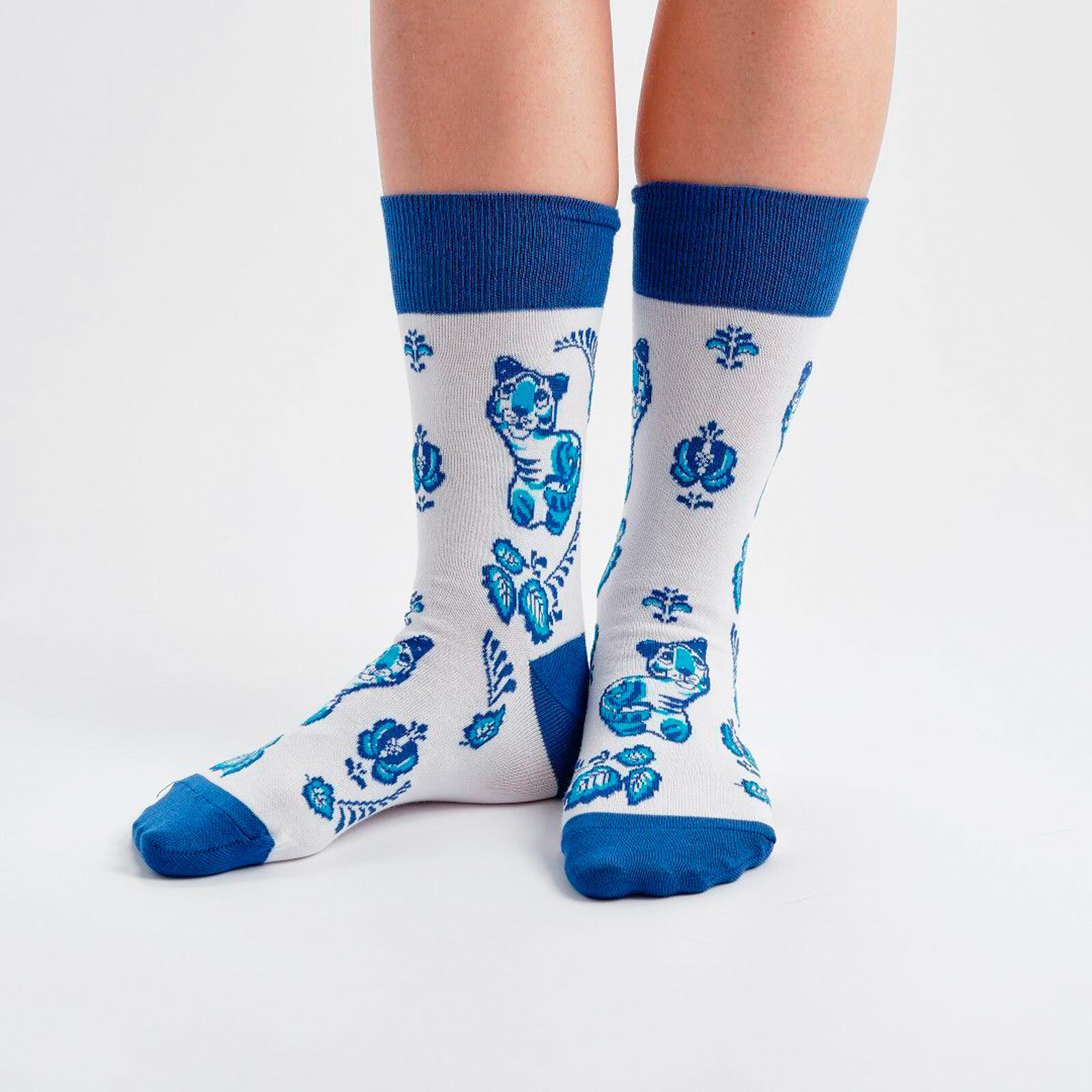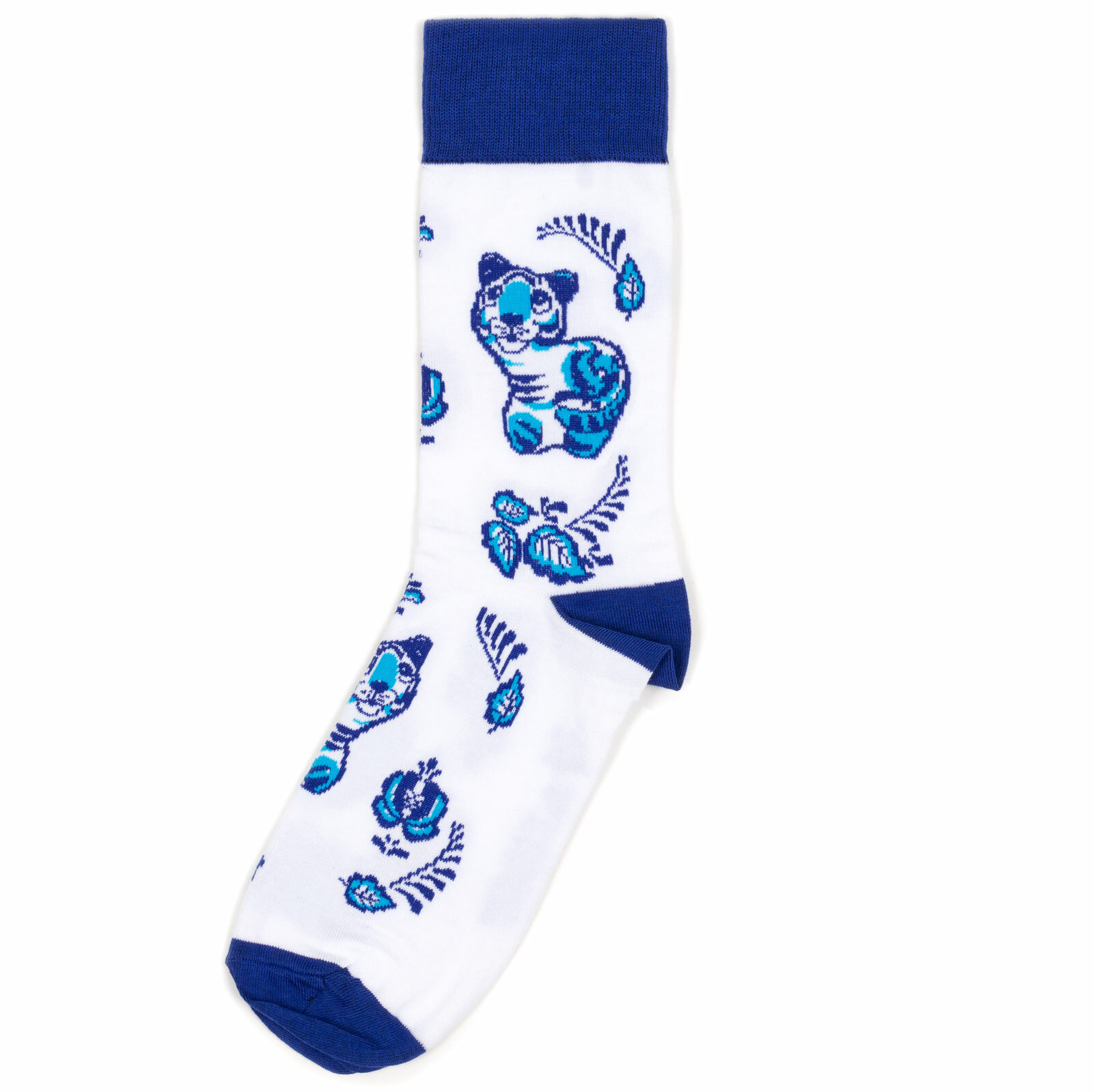 Купить Носки St. Friday - Гжельский тигр, размер 42-46, голубой, синий, белый