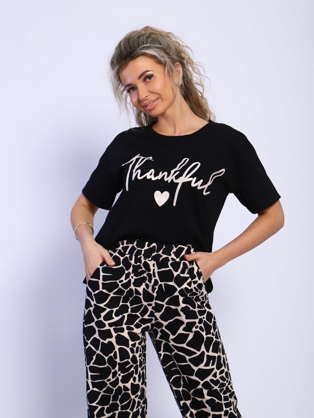 Комплект Инсар Текстиль 724/черный/бежевый/гепард "Инсар Текстиль", размер 44, черный, бежевый