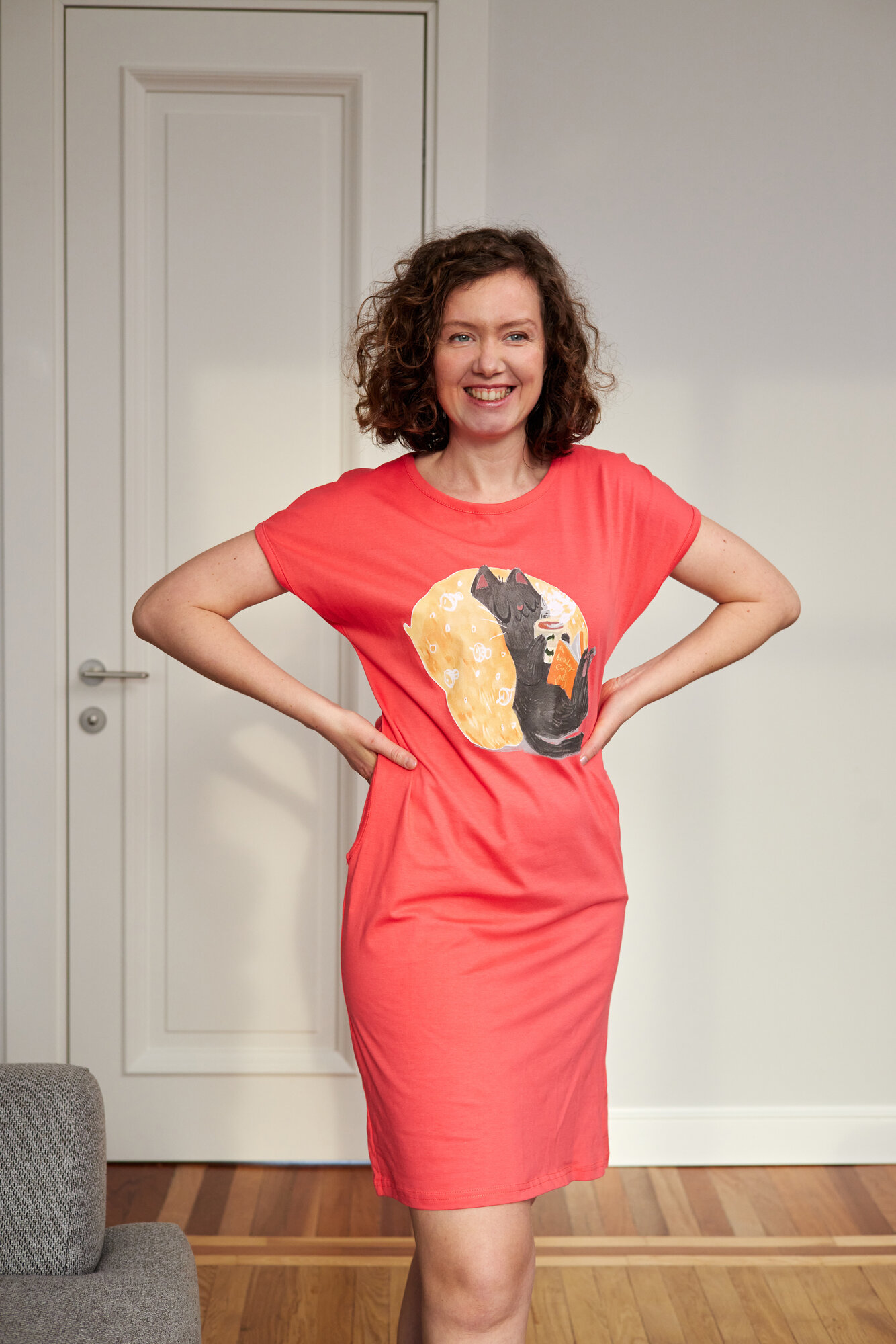Женская платье-туника, с рукавом, вискоза, с карманами, цвет персиковый, бежевый. Размер 46