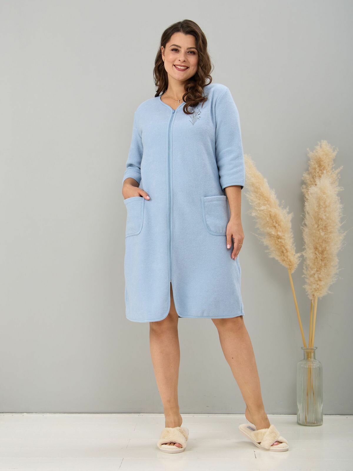 Халат Алтекс, размер 56, голубой 1