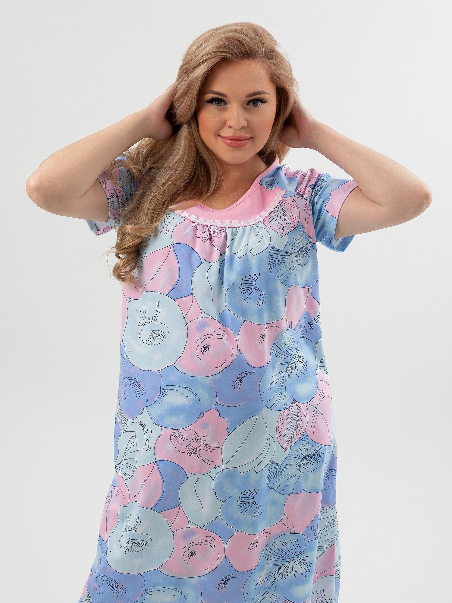 Сорочка Трикотажные сезоны Весна-лето 2025, размер 60, голубой, розовый, синий интересное:
