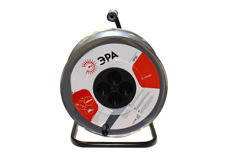 Катушка для удлинителя силового ЭРА K-M-4 металлическая пустая 4 гнезда без заземляющих контактов Б