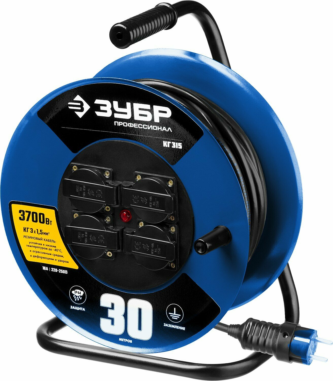 Удлинитель на катушке КГ 315, 30 м, 3700 Вт, 4 гнезда, IP44, КГ 3х1,5 кв мм, ЗУБР Профессионал