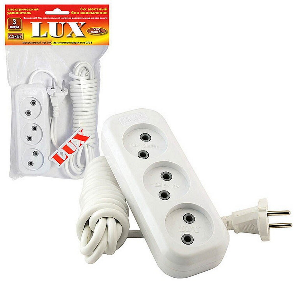 Удлинитель LUX 3 гнезда шнур 10 метров без заземления