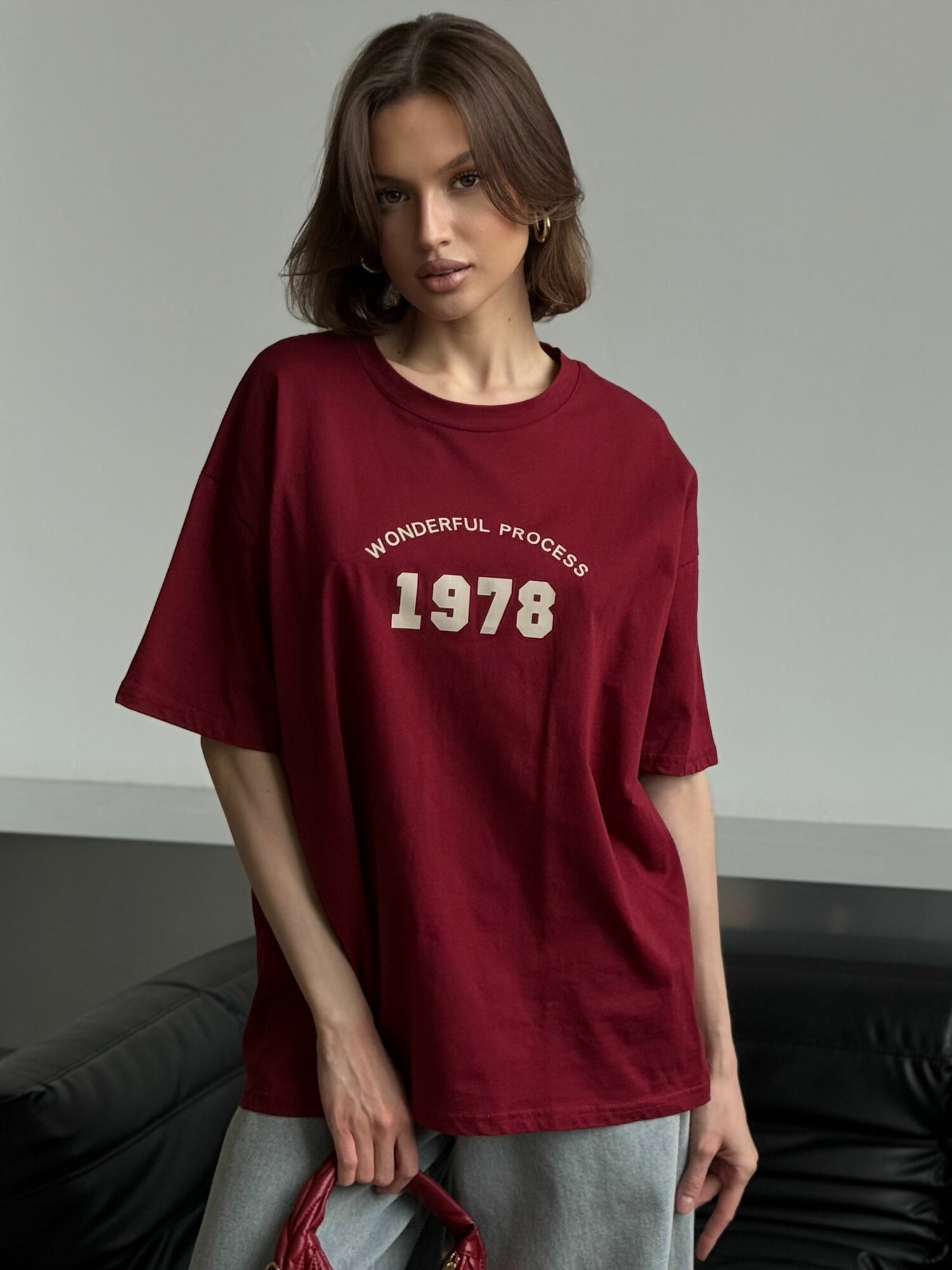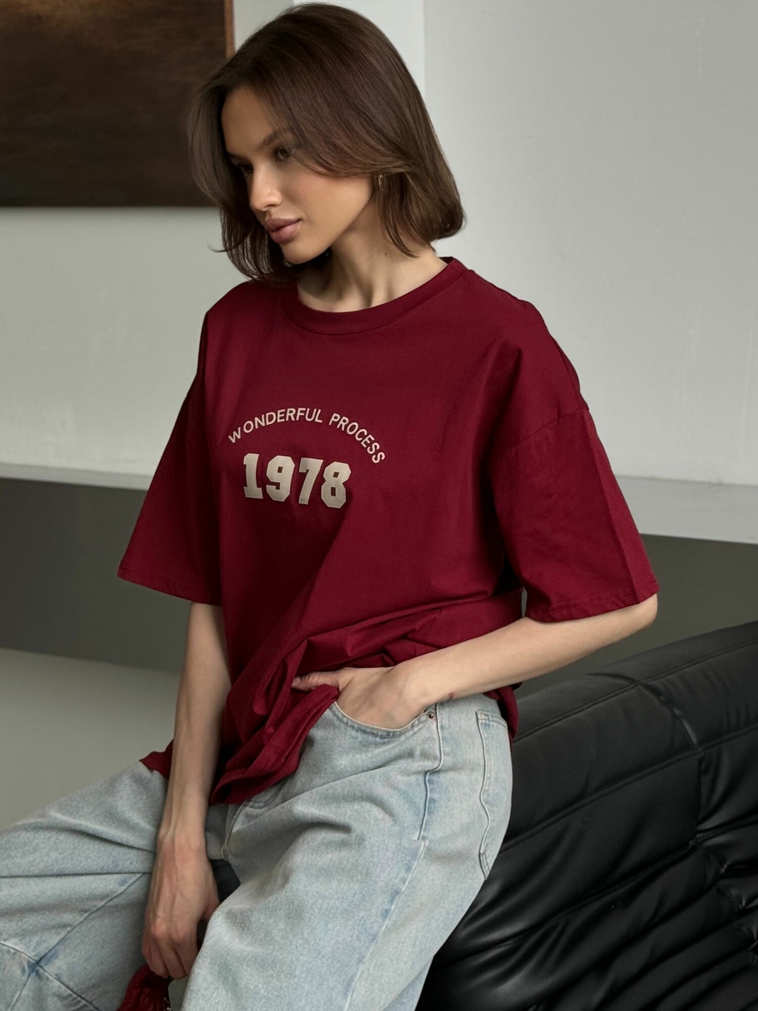 Футболка EMBERENS Весна-лето 2025, размер 40-48, бордовый интересное: