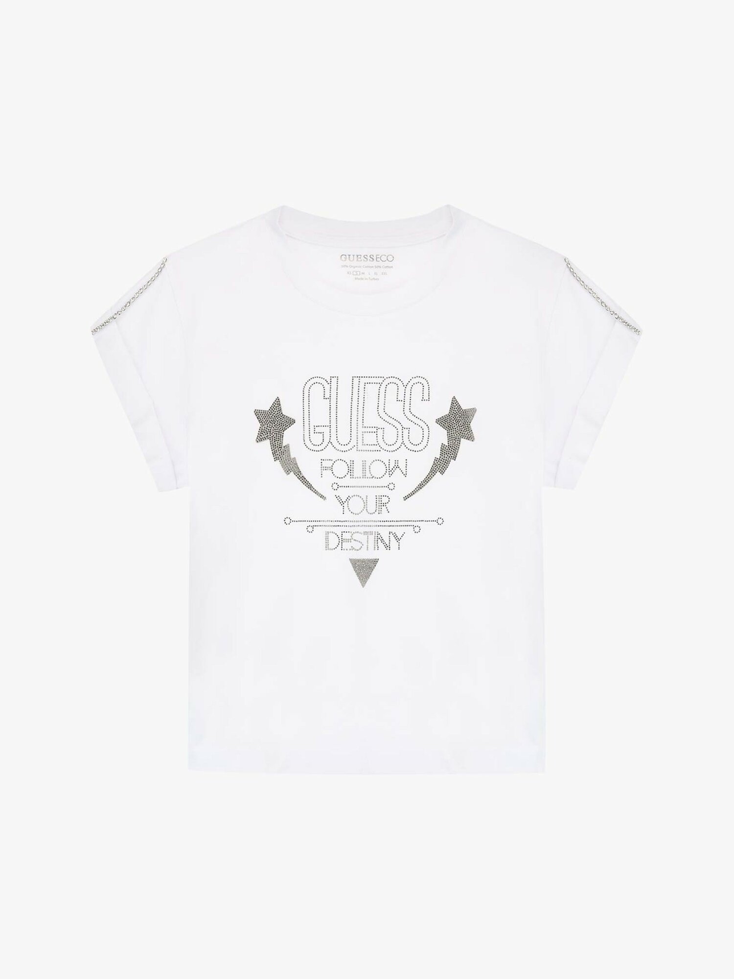 Футболка GUESS SS CN SLEEVES STRASS DETAIL, размер XS, белый