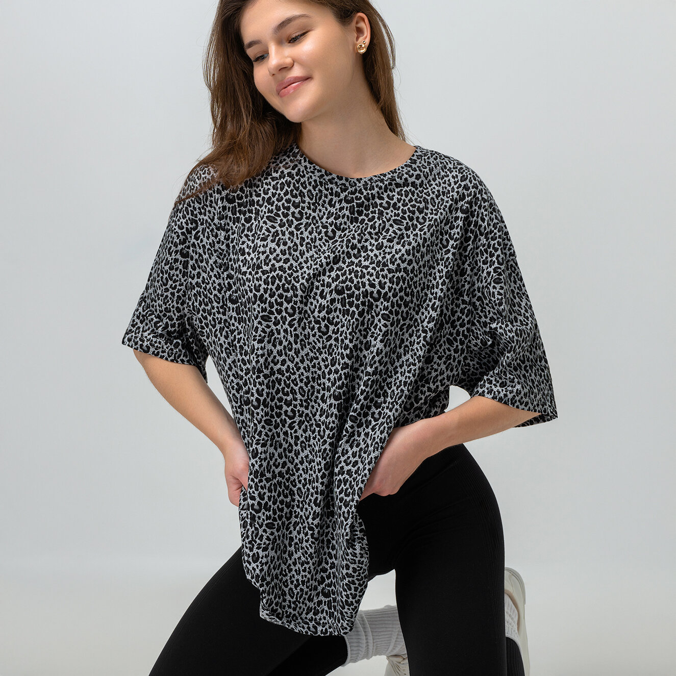 Футболка Happyfox для женщин, размер 48-50, черный, серый