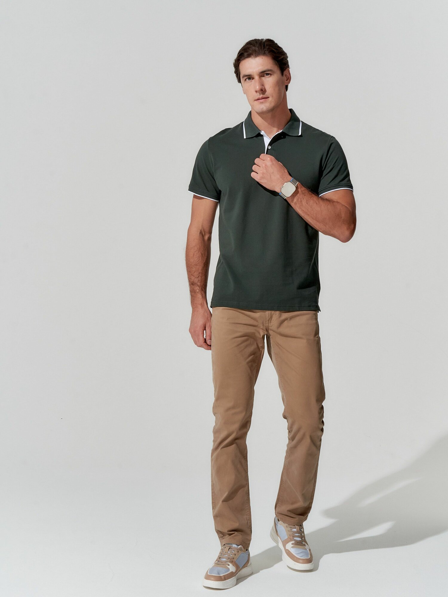 Купить Поло TRUE BALANCE Весна-лето 2025, размер 48, темный хаки