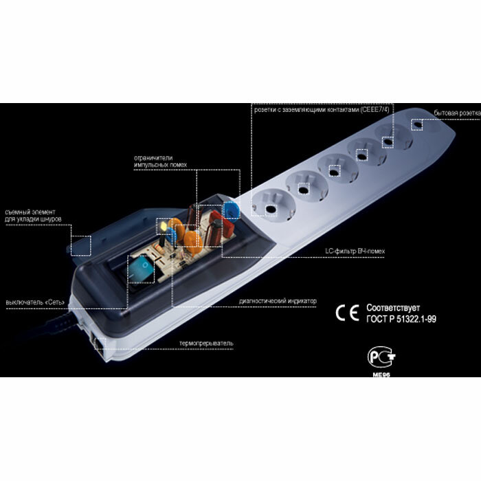 Сетевой фильтр Pilot-Pro 1.8m. 6 розеток интересное: