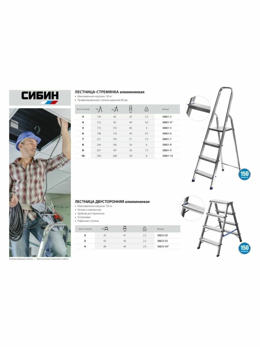 Лестница-стремянка двухсторонняя 38825-04, число ступеней 4, алюминий, максимальная нагрузка 150 кг СИБИН