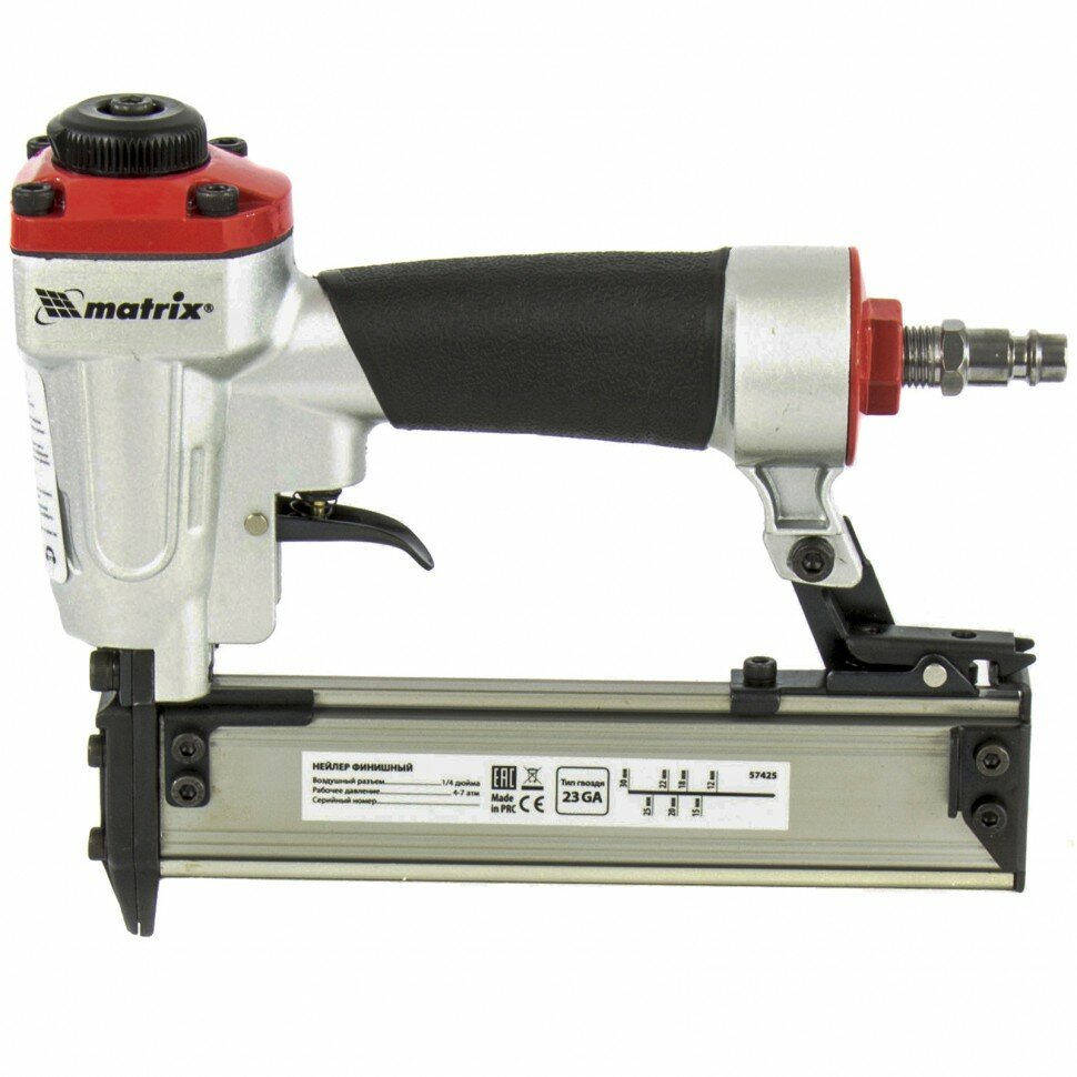 Нейлер финишный, шпилькозабивной пистолет, пневматический, гвоздь 23GA D 0.64 мм длина 10-30 мм Matrix (57425)
