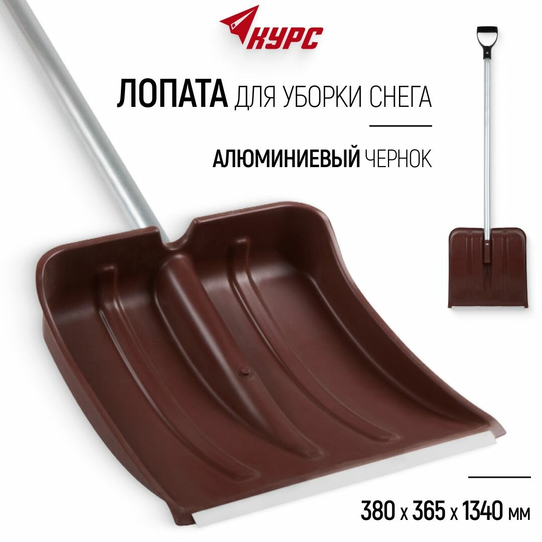 Купить Лопата снеговая пластиковая 380х365х1340 мм Курс с алюминиевым черенком 68116