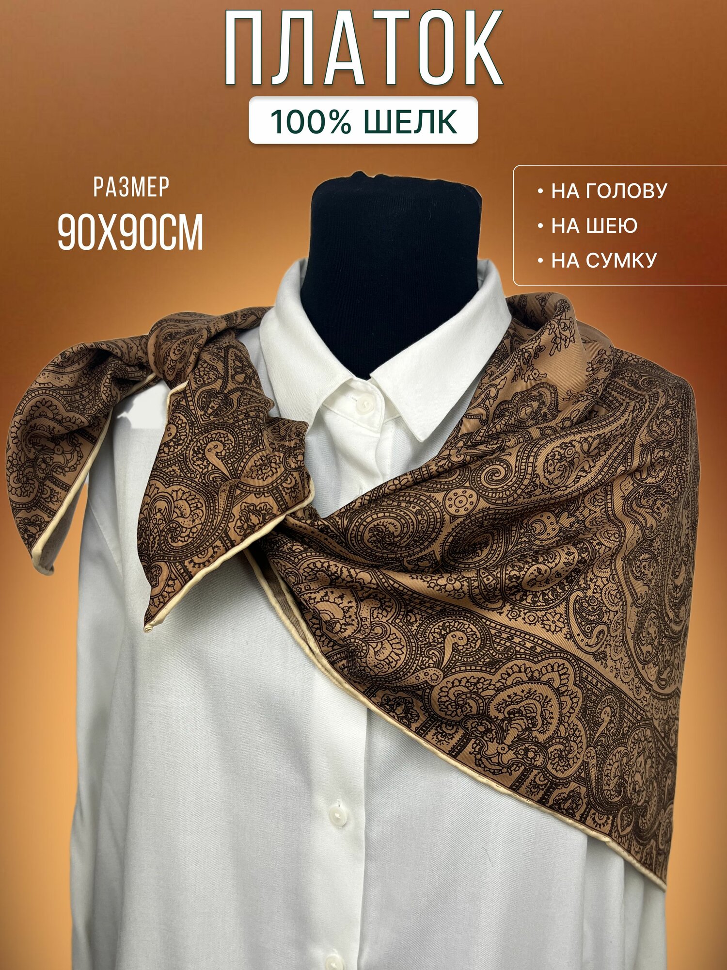 Платок Итальянские традиции для женщин,90х90 см, оранжевый интересное: