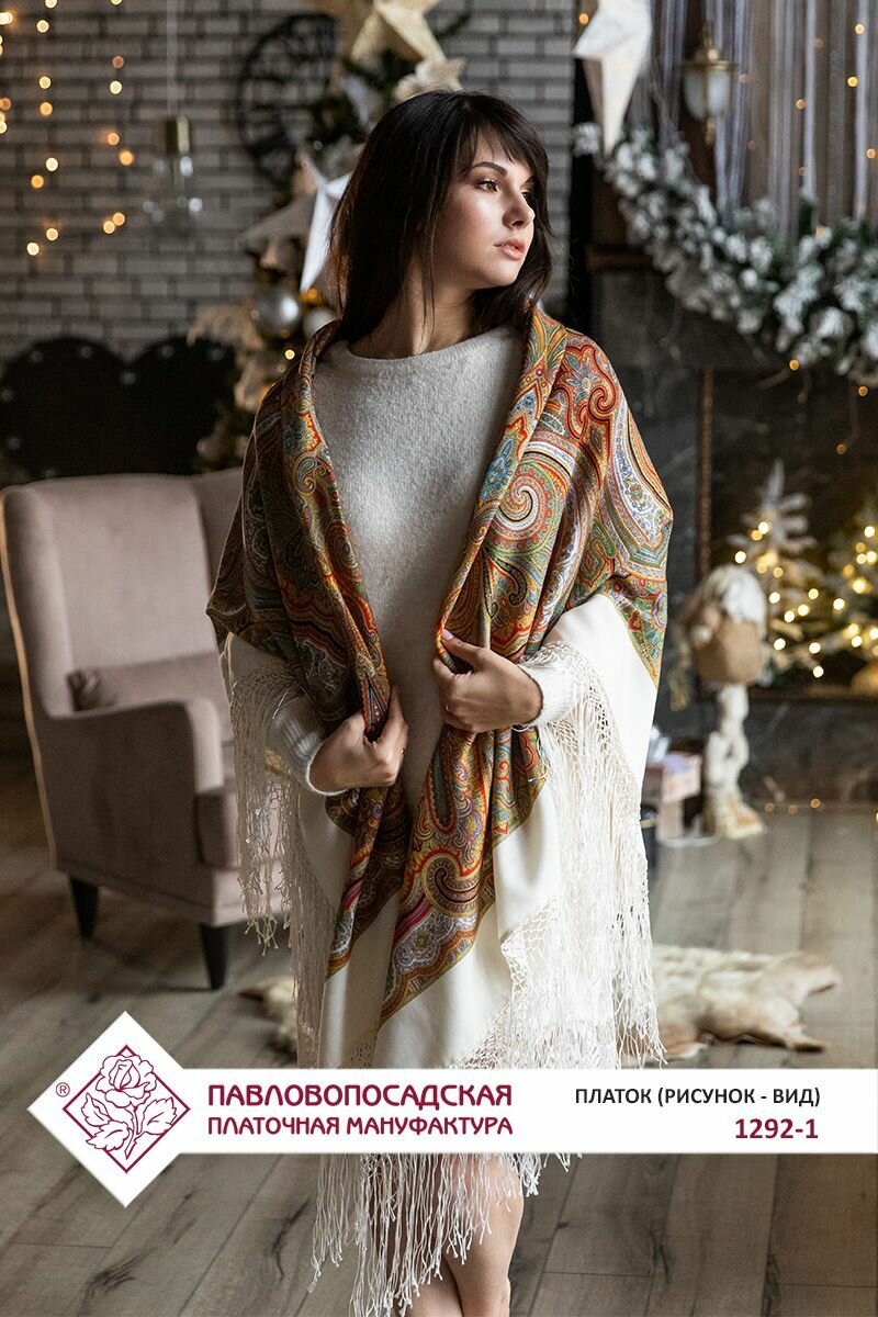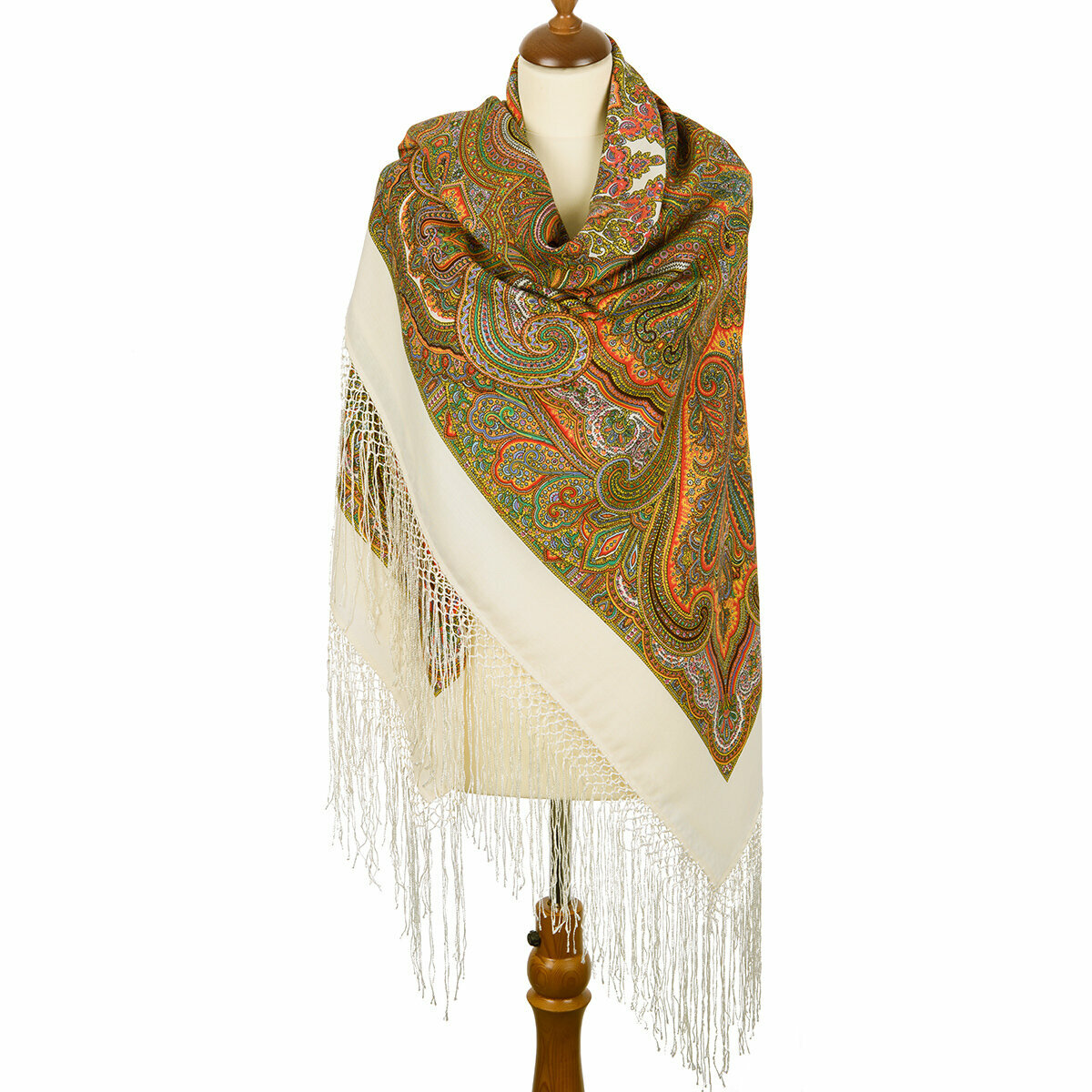 Платок Павловопосадская платочная мануфактура для женщин,148х148 см, белый интересное: