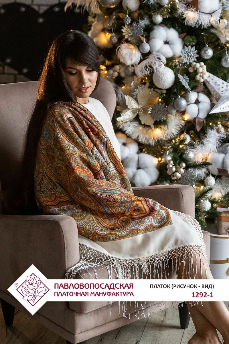 Платок Павловопосадская платочная мануфактура для женщин,148х148 см, коричневый