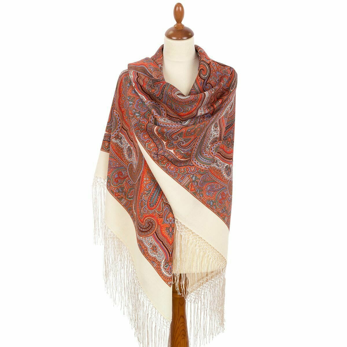 Платок Павловопосадская платочная мануфактура для женщин,148х148 см, белый
